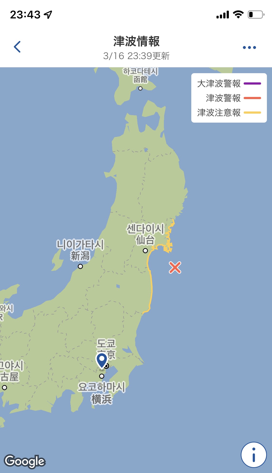 쓰나미 주의도 떴는데 아직은 괜찮은 듯 ㅠ