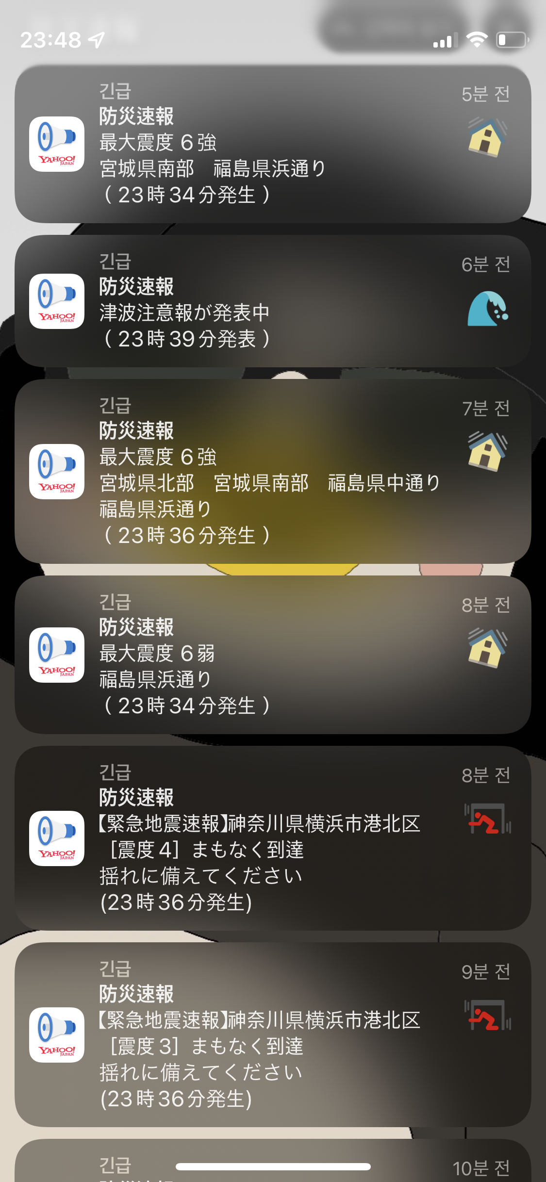 후쿠시마쪽은 6 강에 쓰나미 주의도 떠서 ㄷ ㄷ 하면서 뉴스를 켜봅니다.