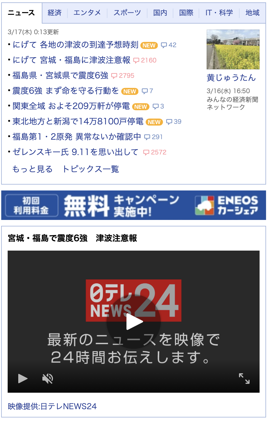 야후 뉴스는 다 쓰나미 주의 뉴스로 도배중