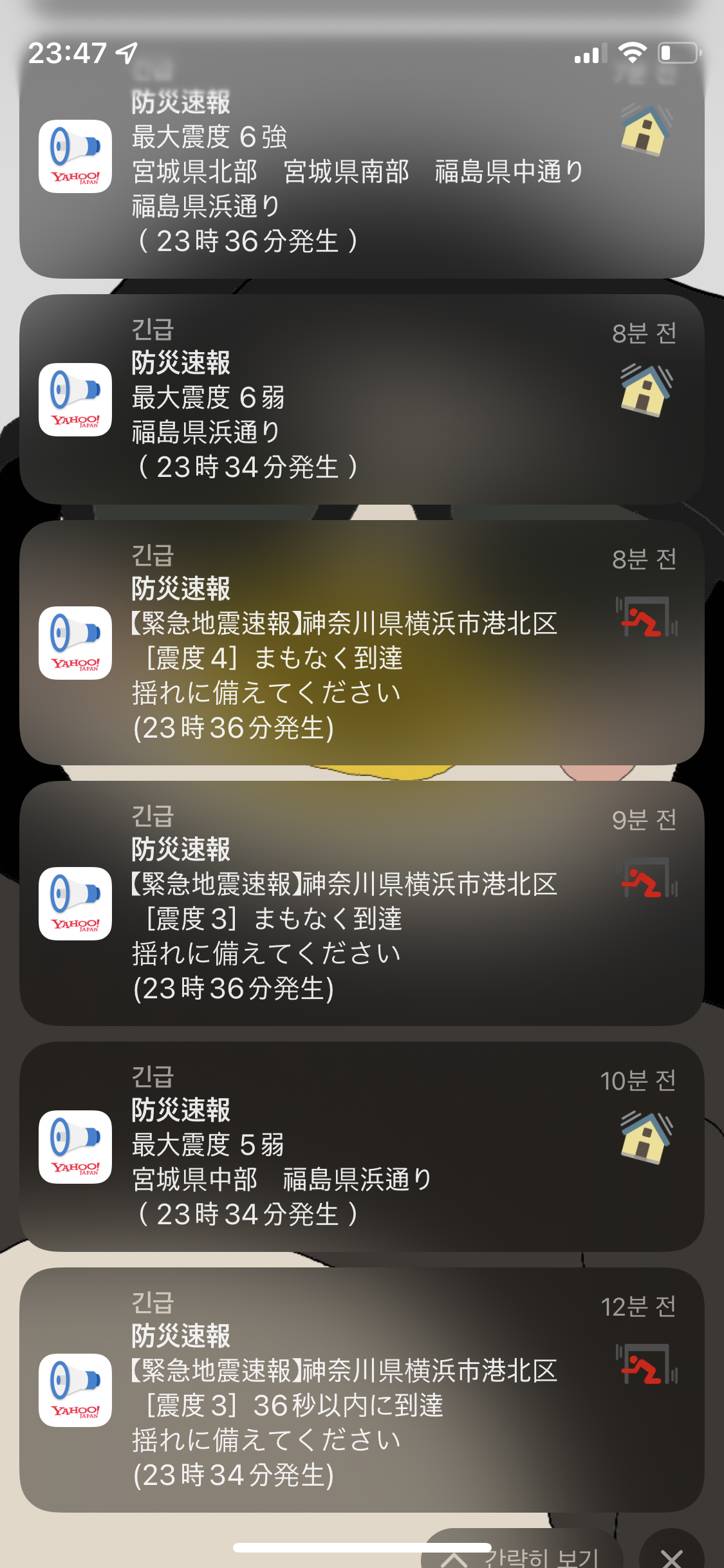 잊을만 하면 그쪽 지진 & 쓰나미 경보가 은근 뜨네요
