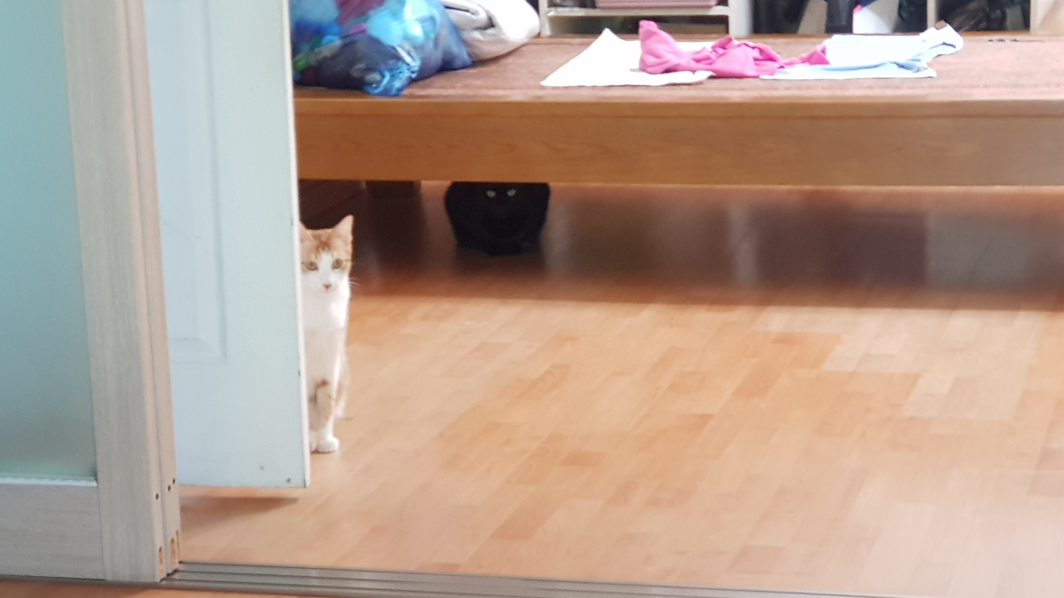 요즘 집사 외출이 잦아져서 삐진 듯. 간식 꺼냈는데도 침대 밑 까지만 나와주심