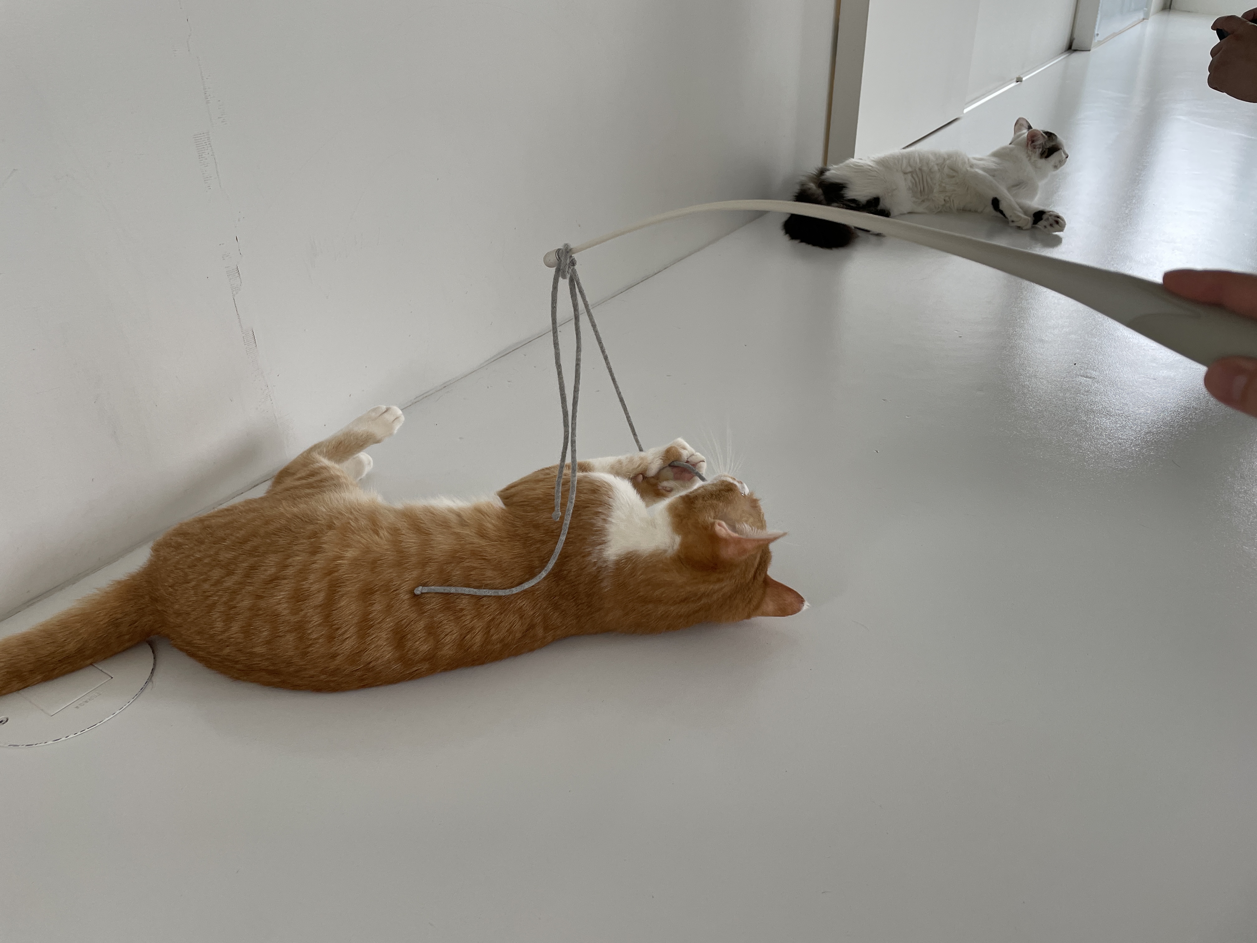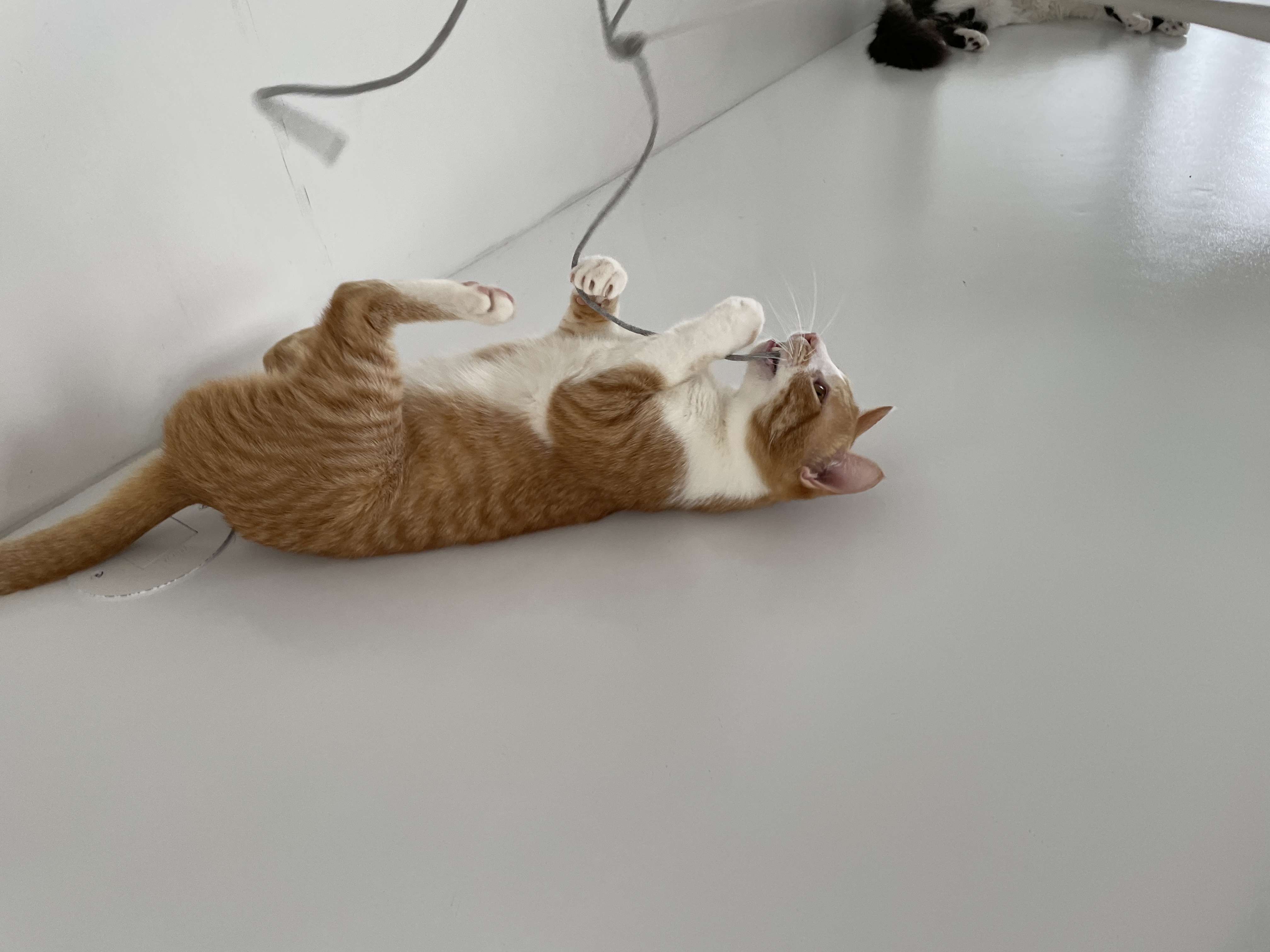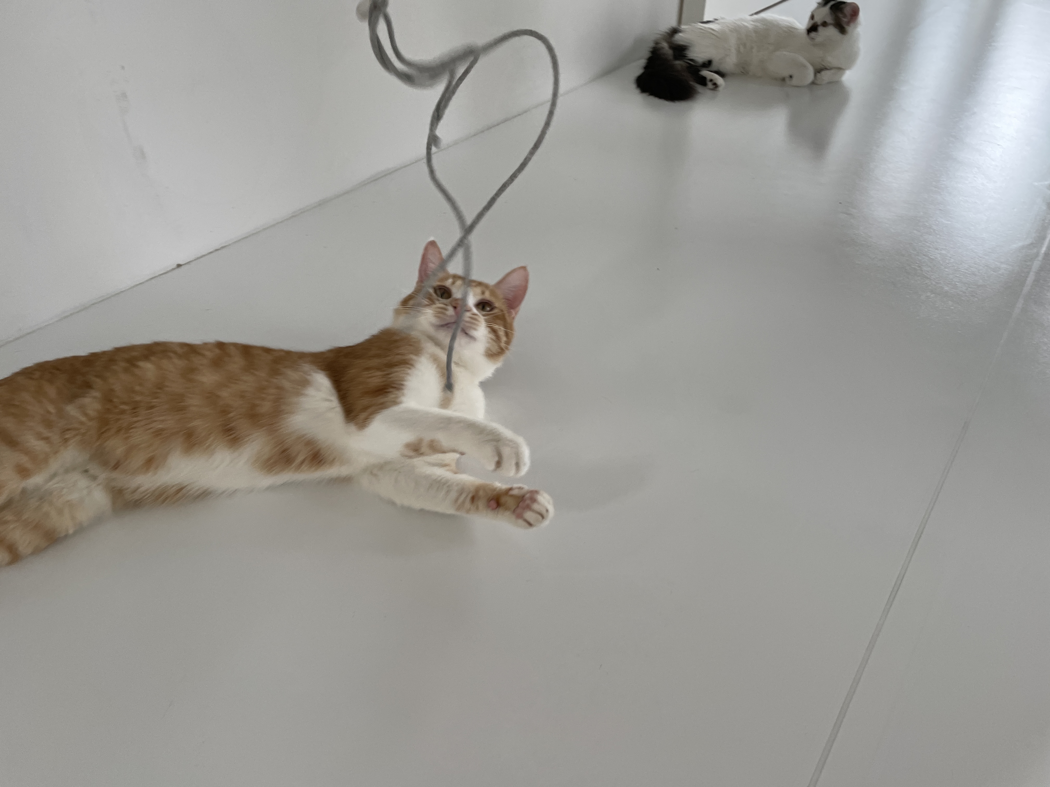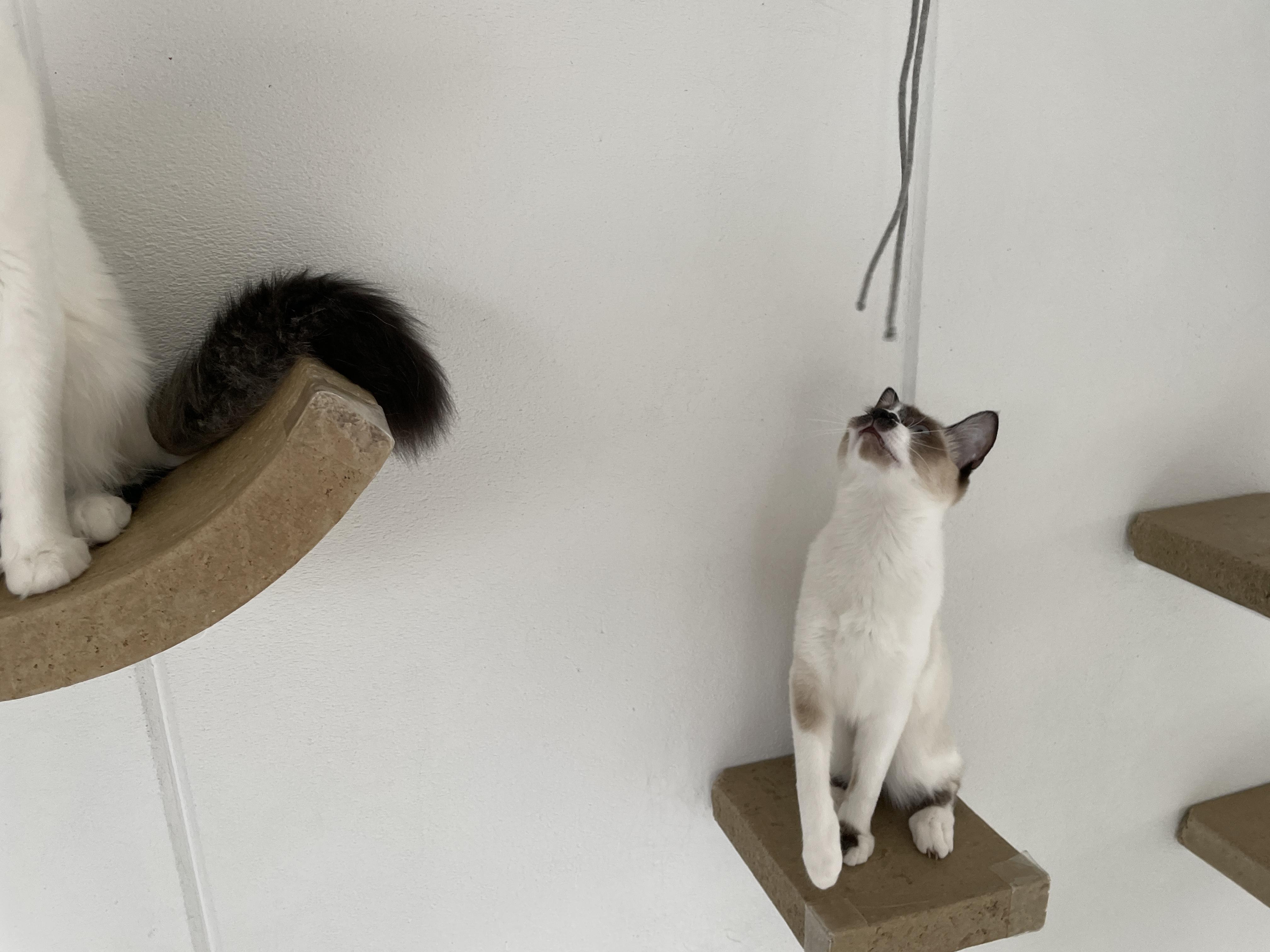 슬슬 끈에 흥미를 보이기 시작하시는 냥이님들