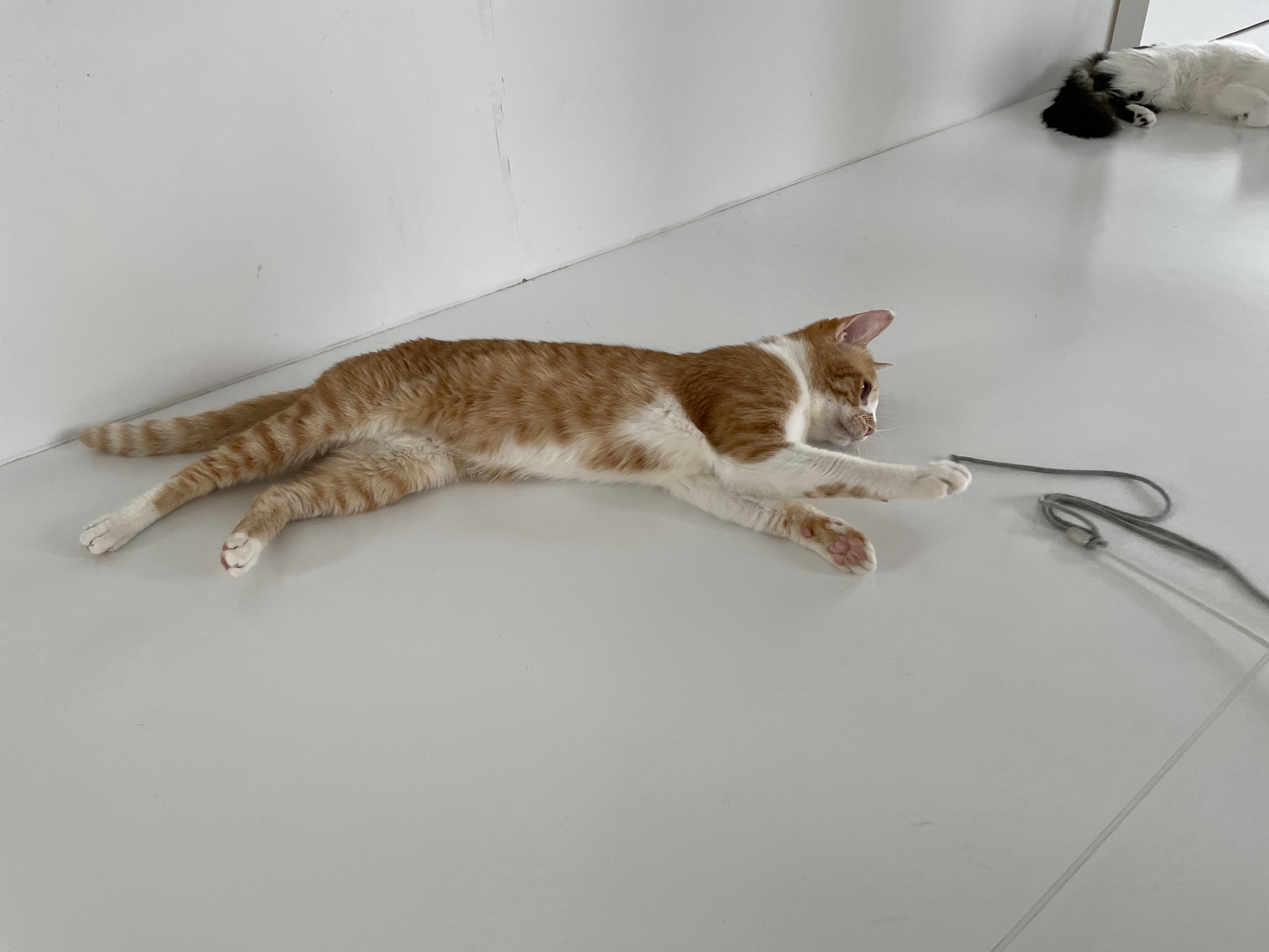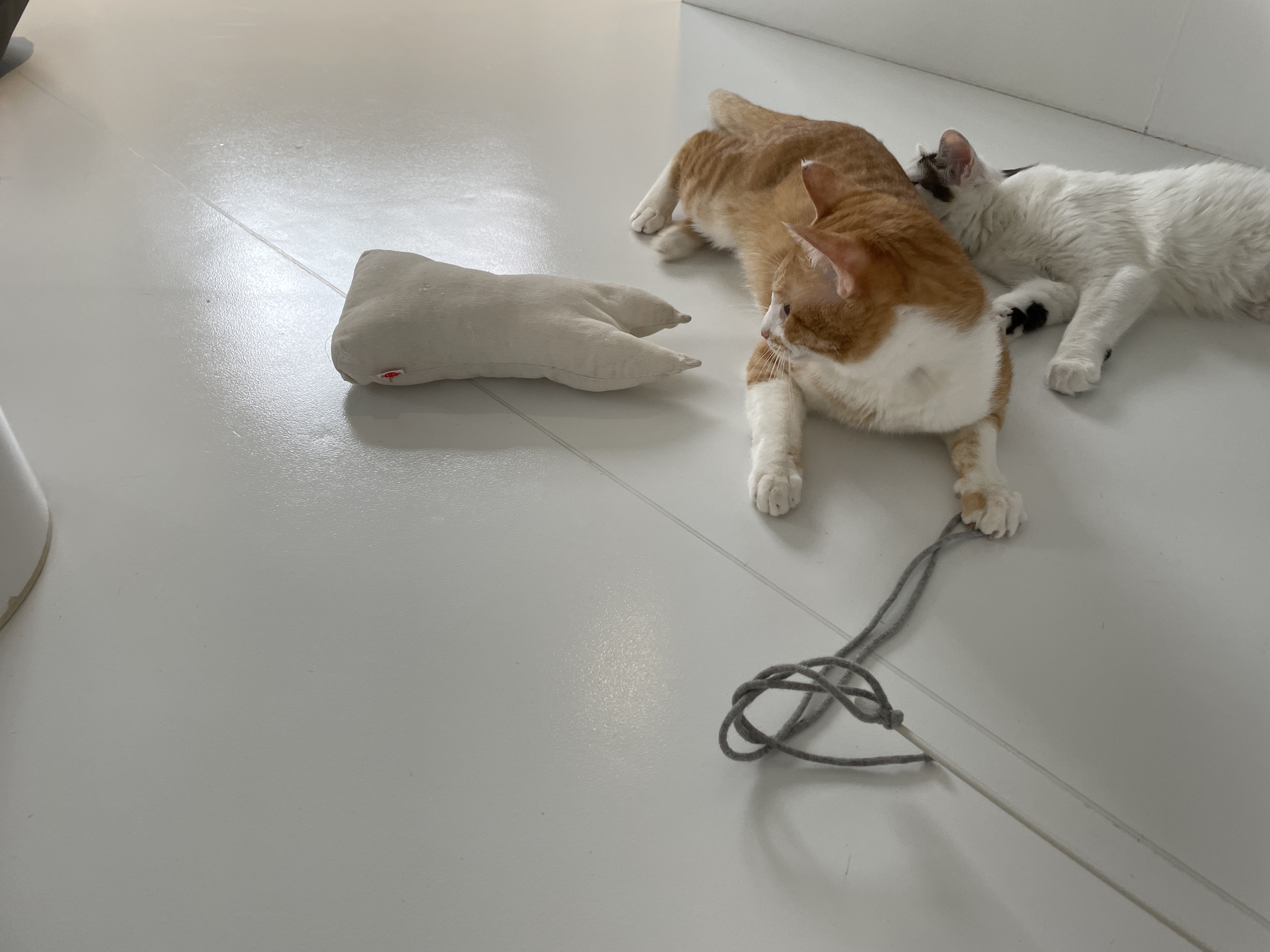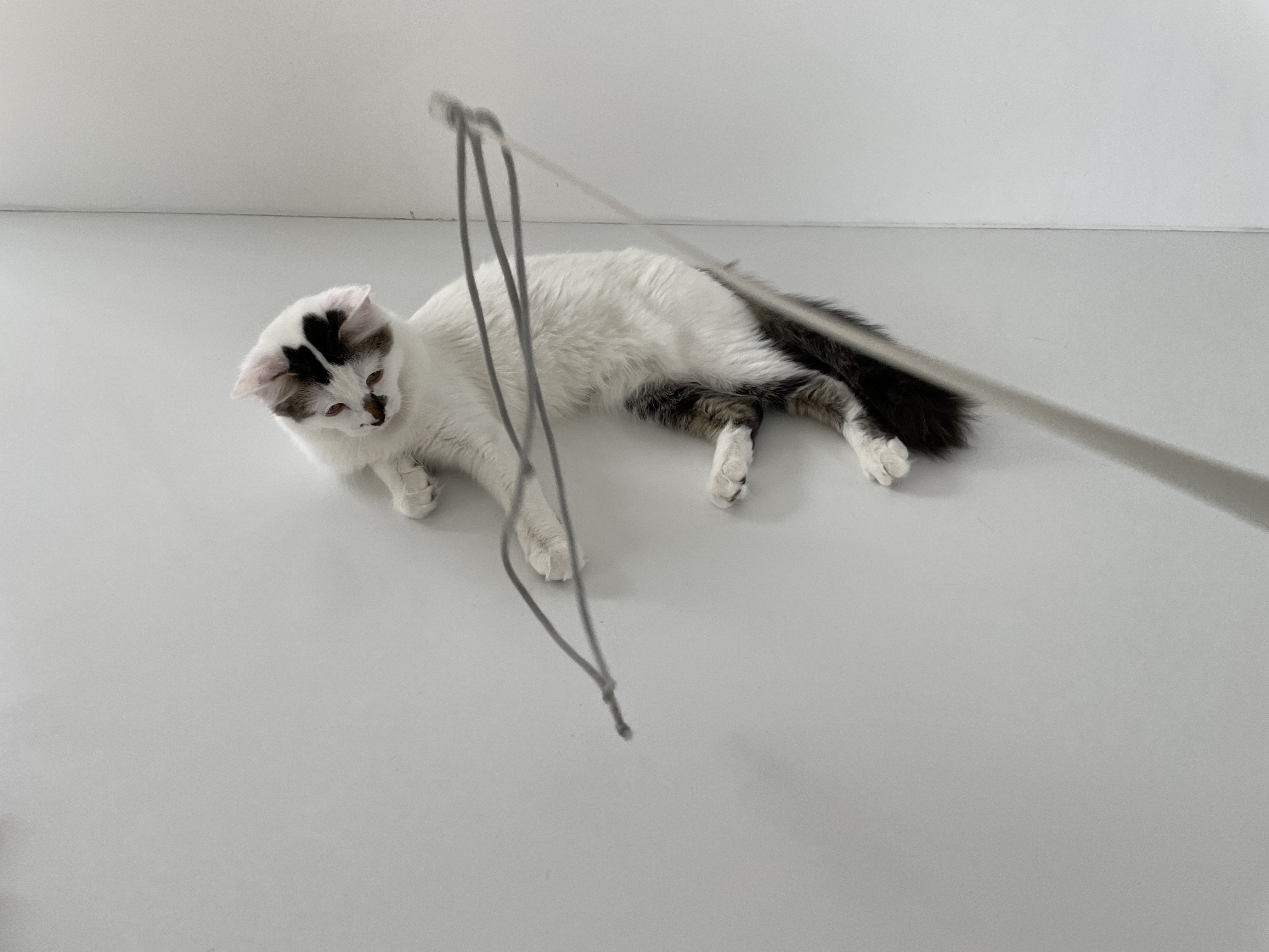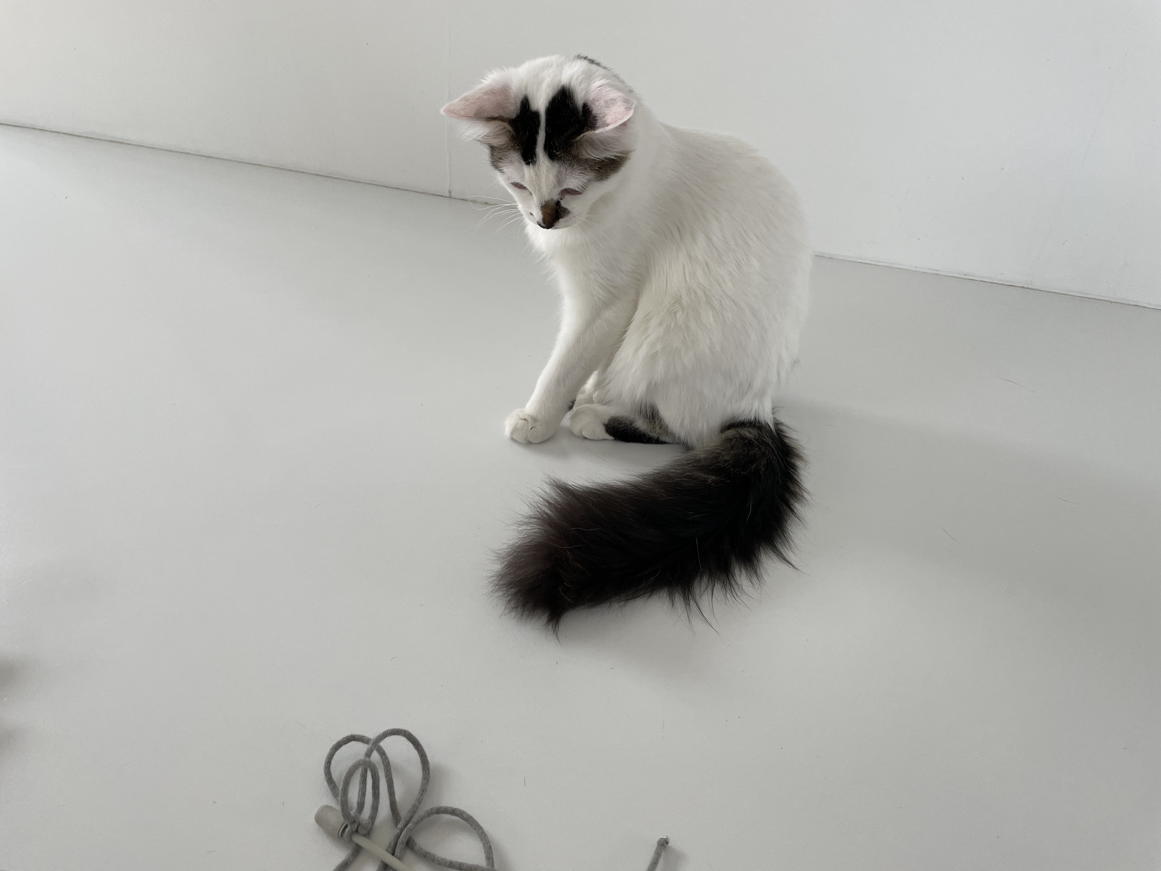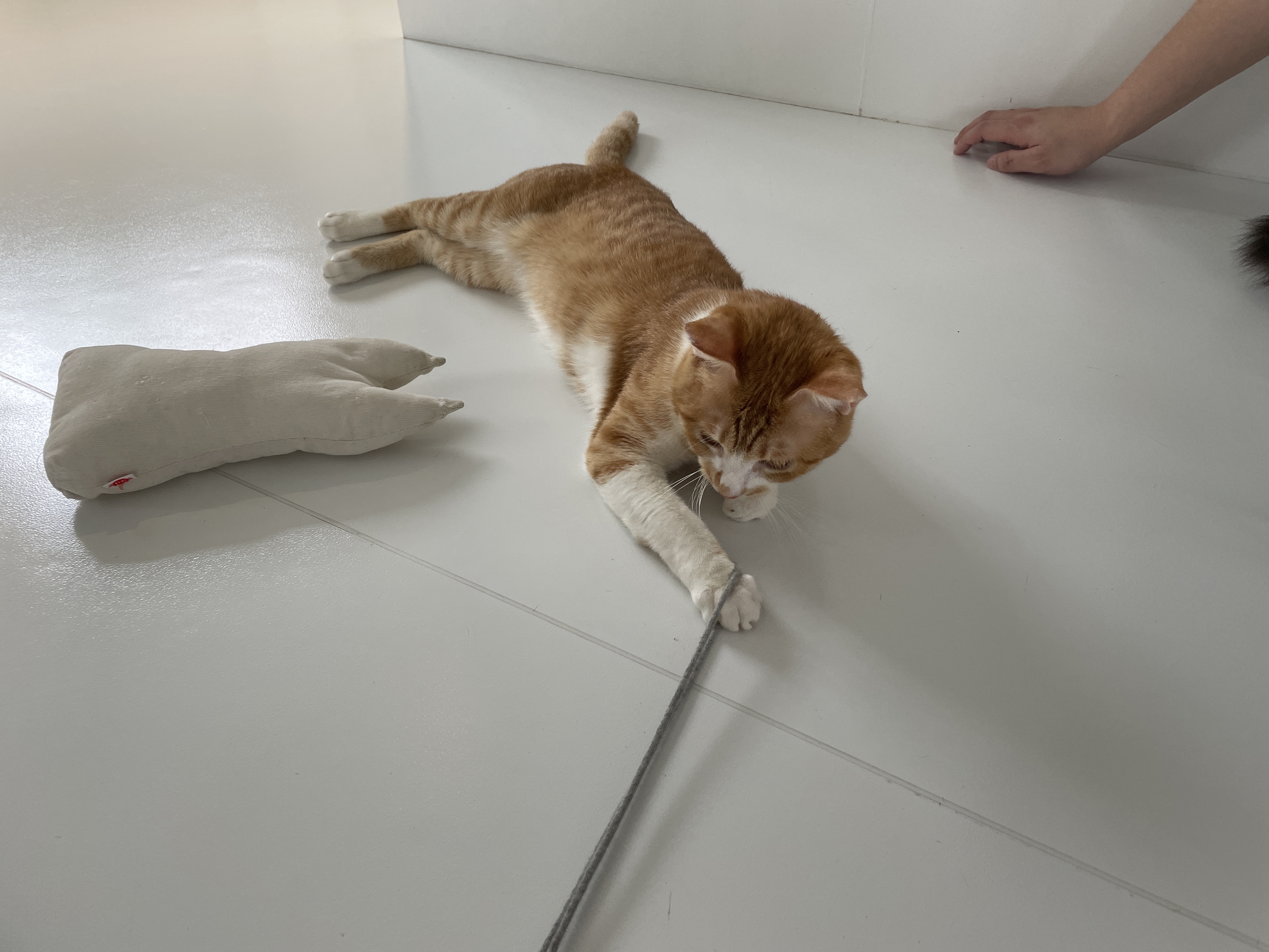 슬슬 끈에 흥미를 보이기 시작하시는 냥이님들