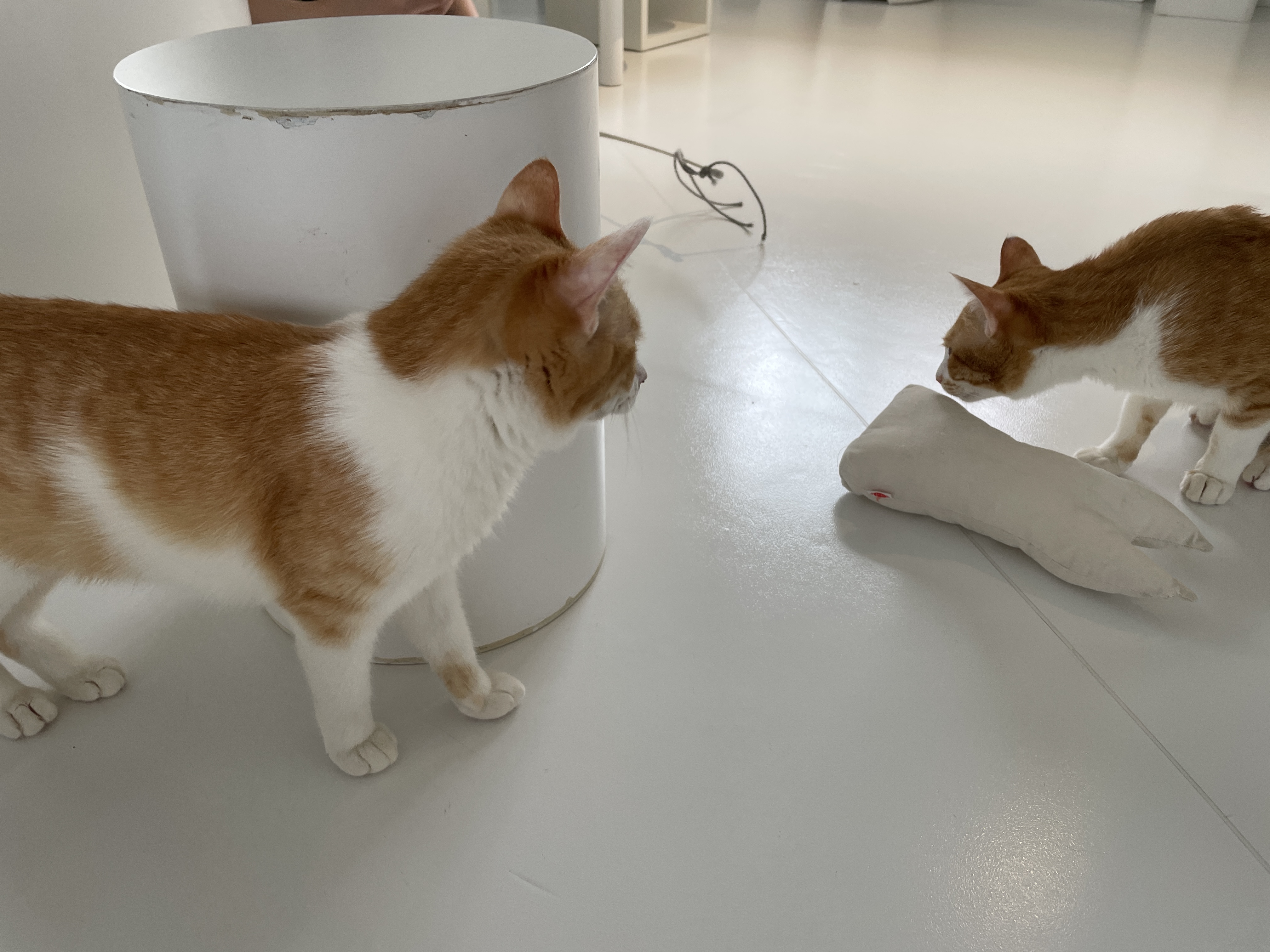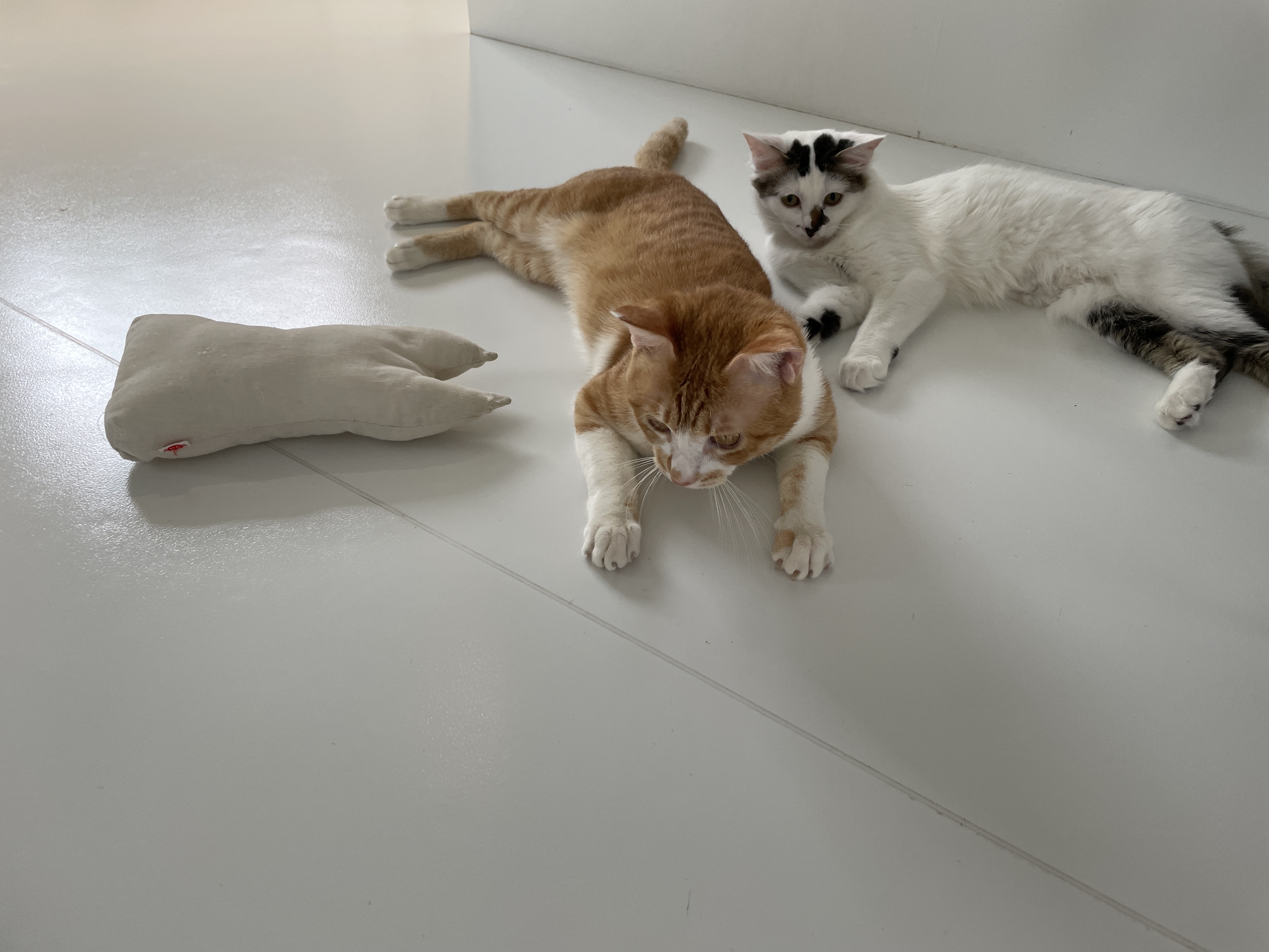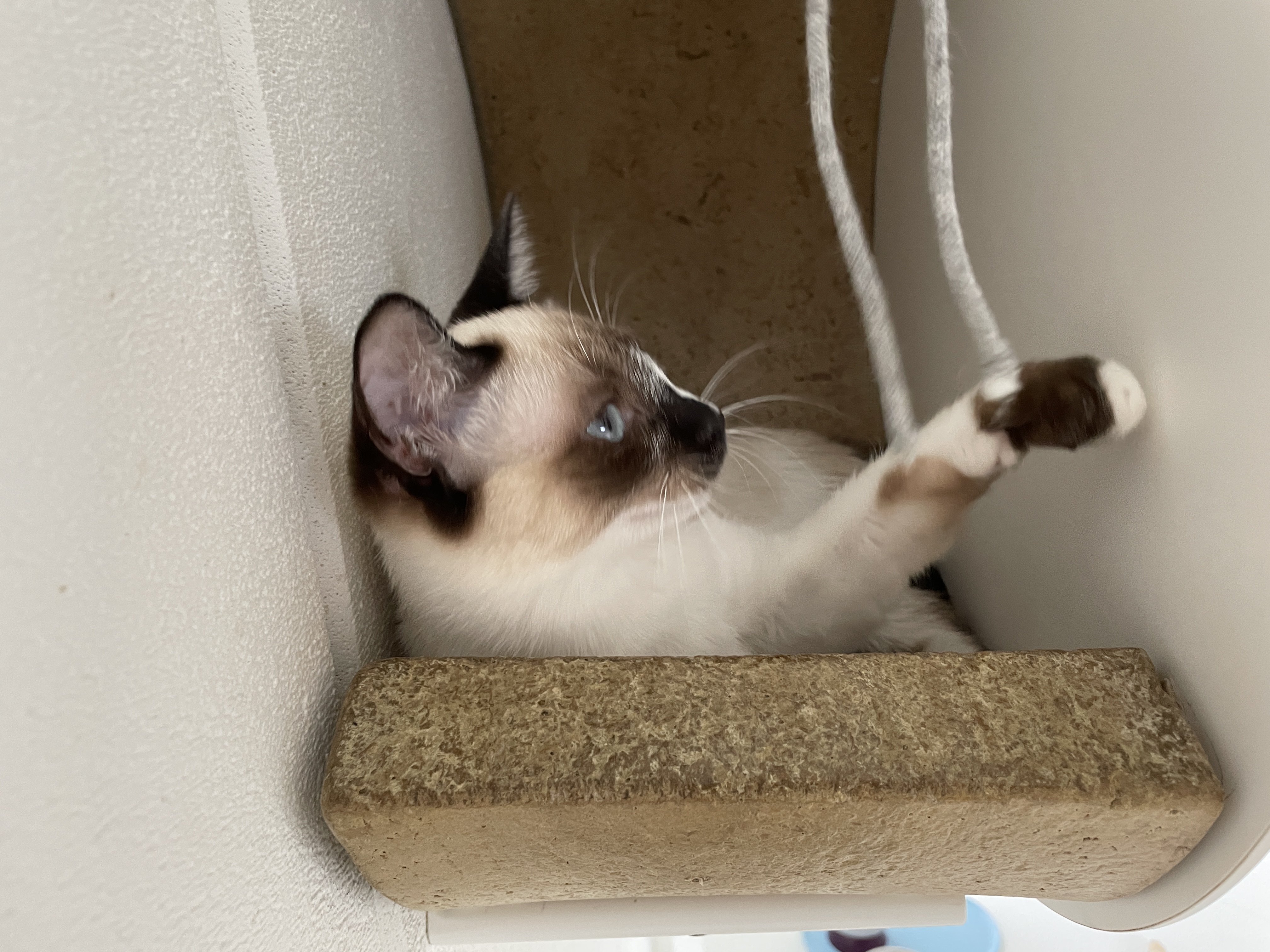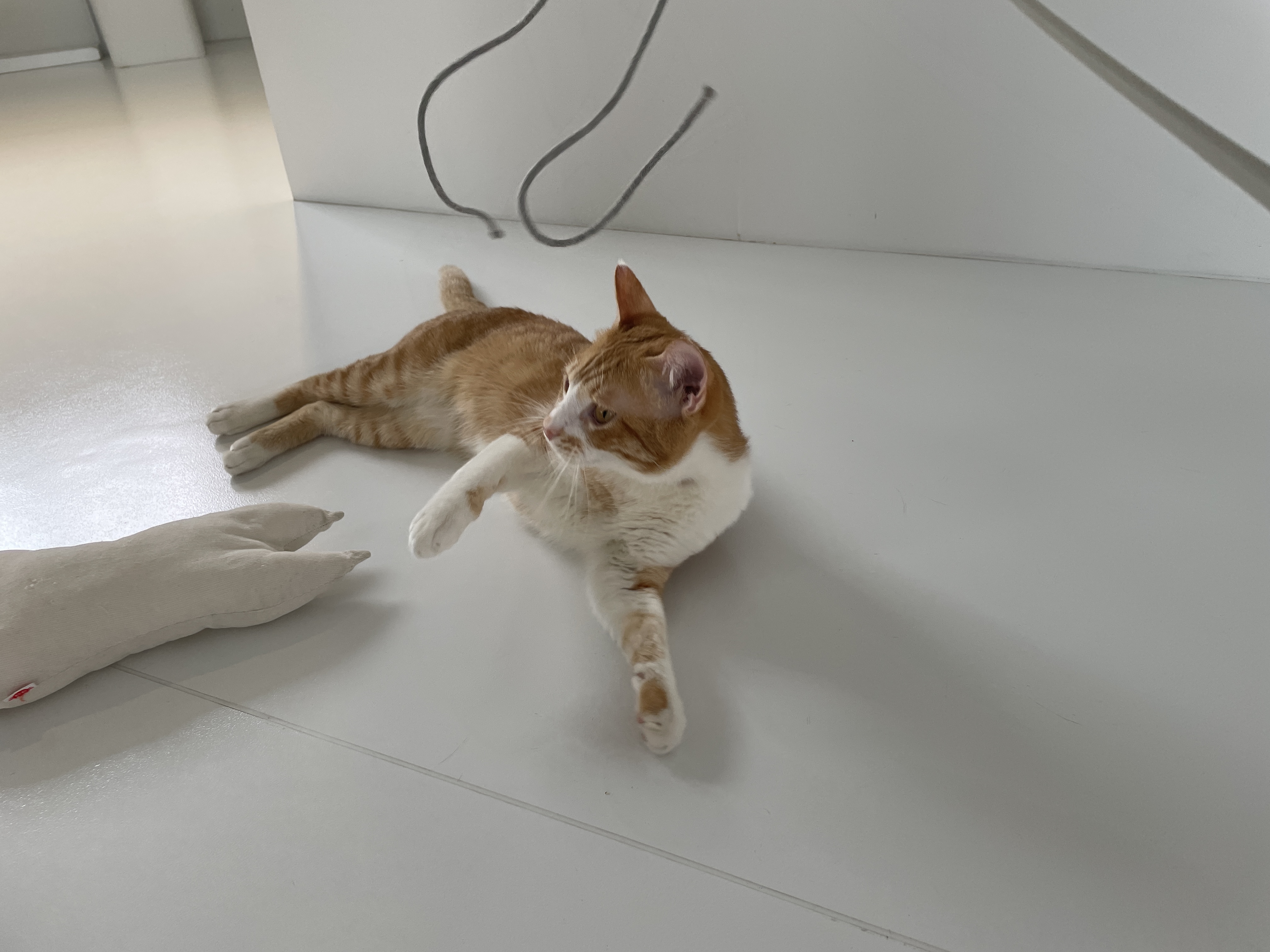 슬슬 끈에 흥미를 보이기 시작하시는 냥이님들