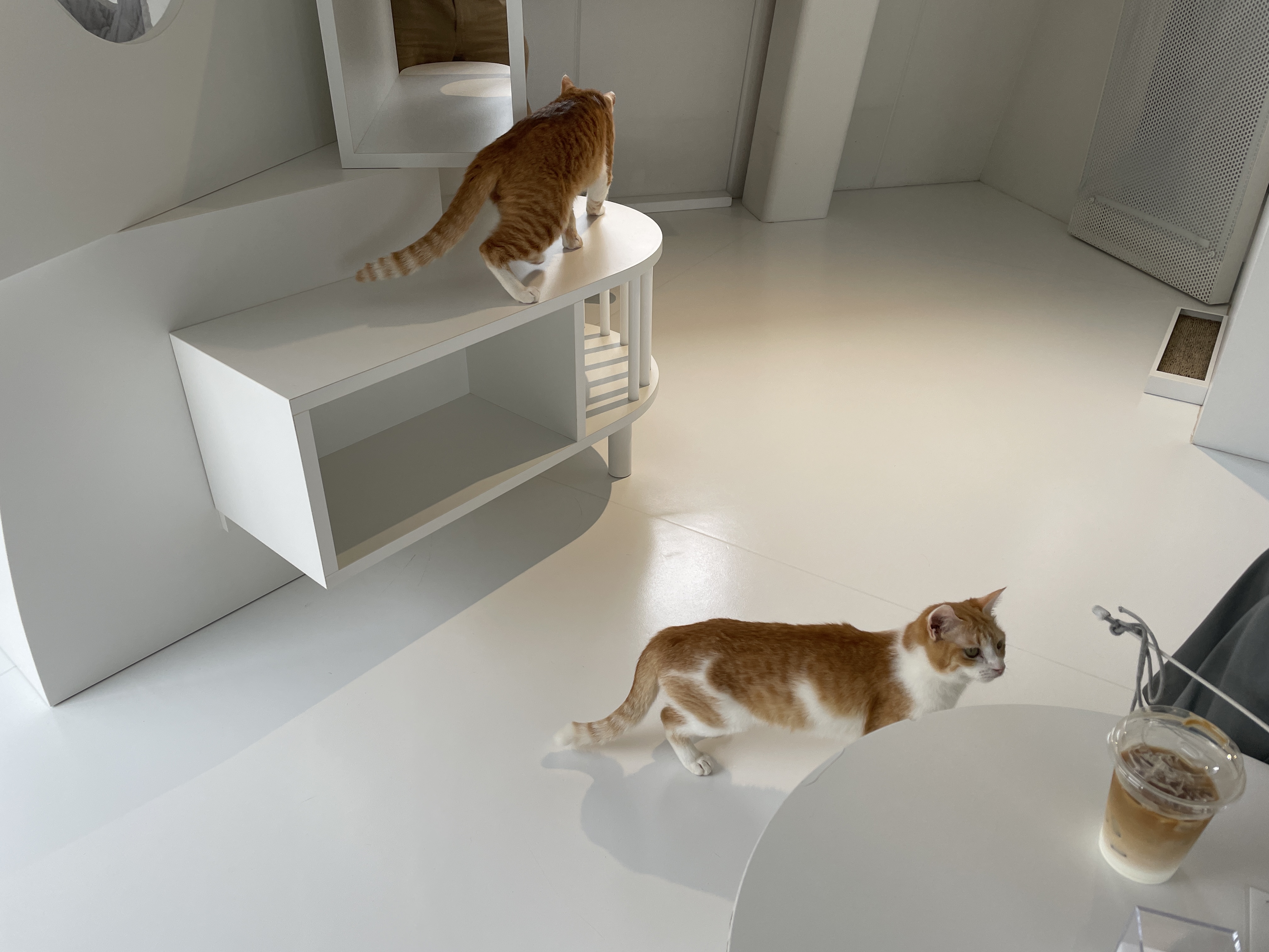 나보다 먼저 와 계시던 손님 분이 냥이들이 슬 일어날 시간인걸 아셨나