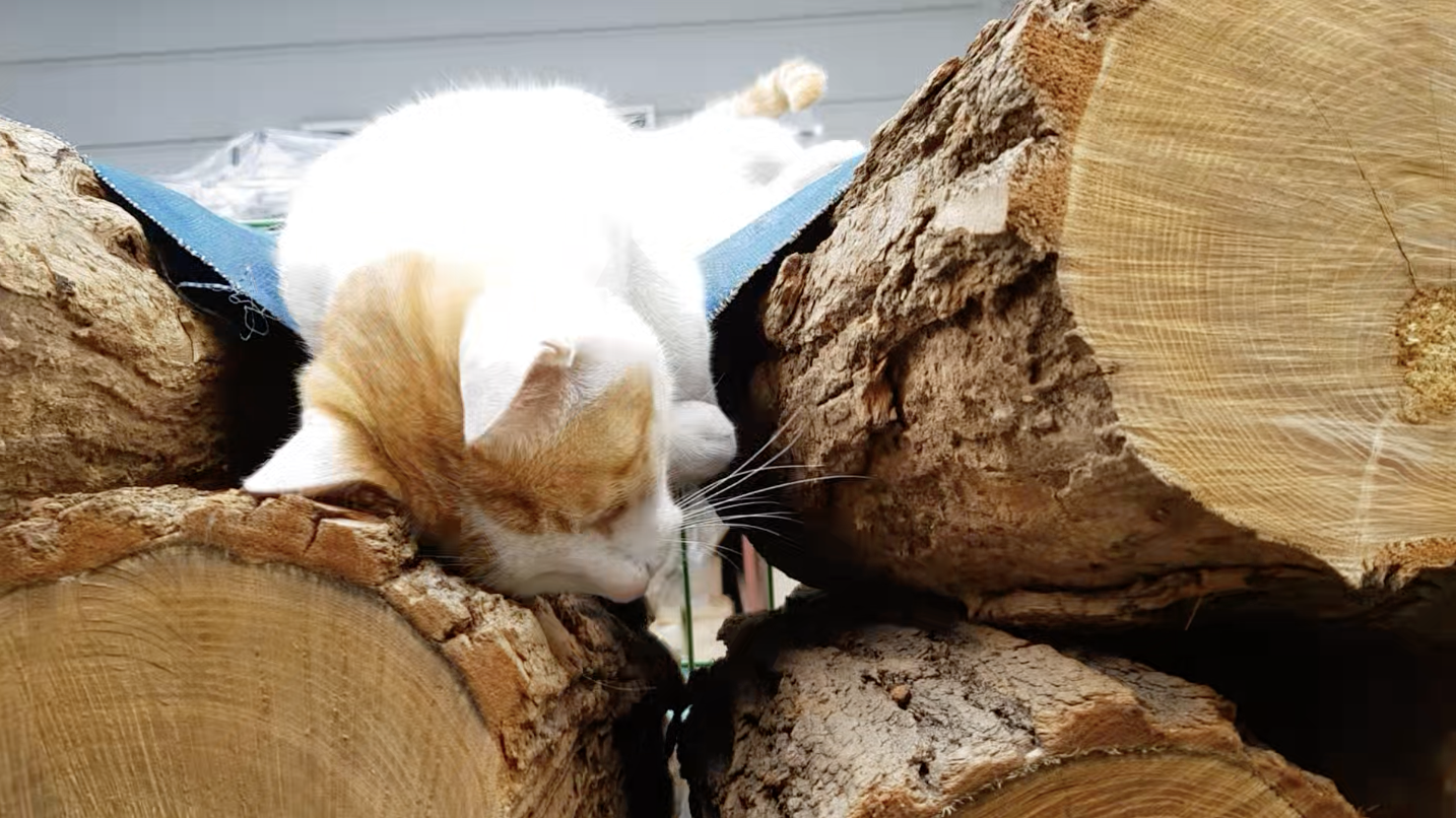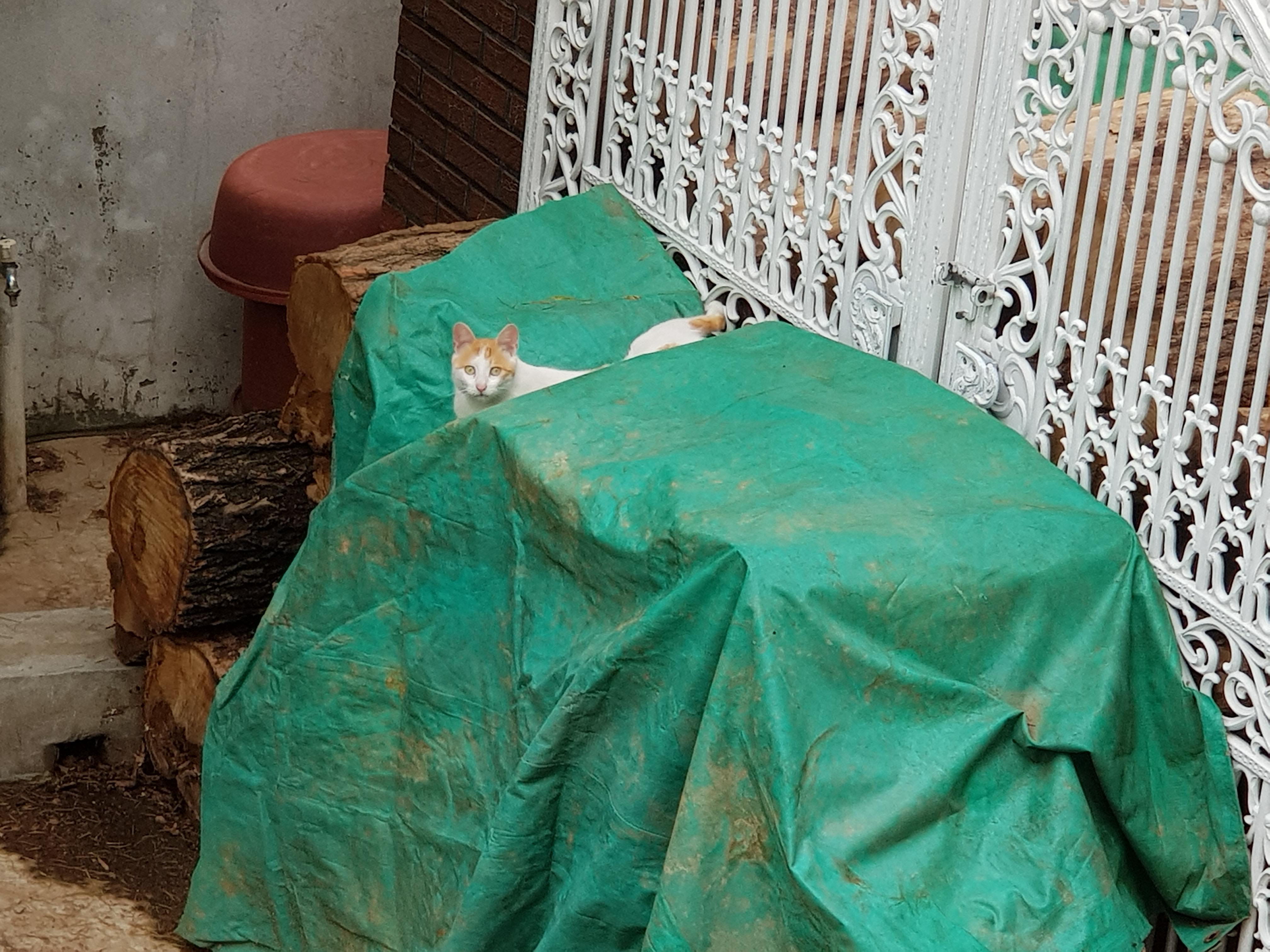 여름이 되니 어떻게 알았는지 나무 덮어둔 천막에 올라가 생활중인 옹심님