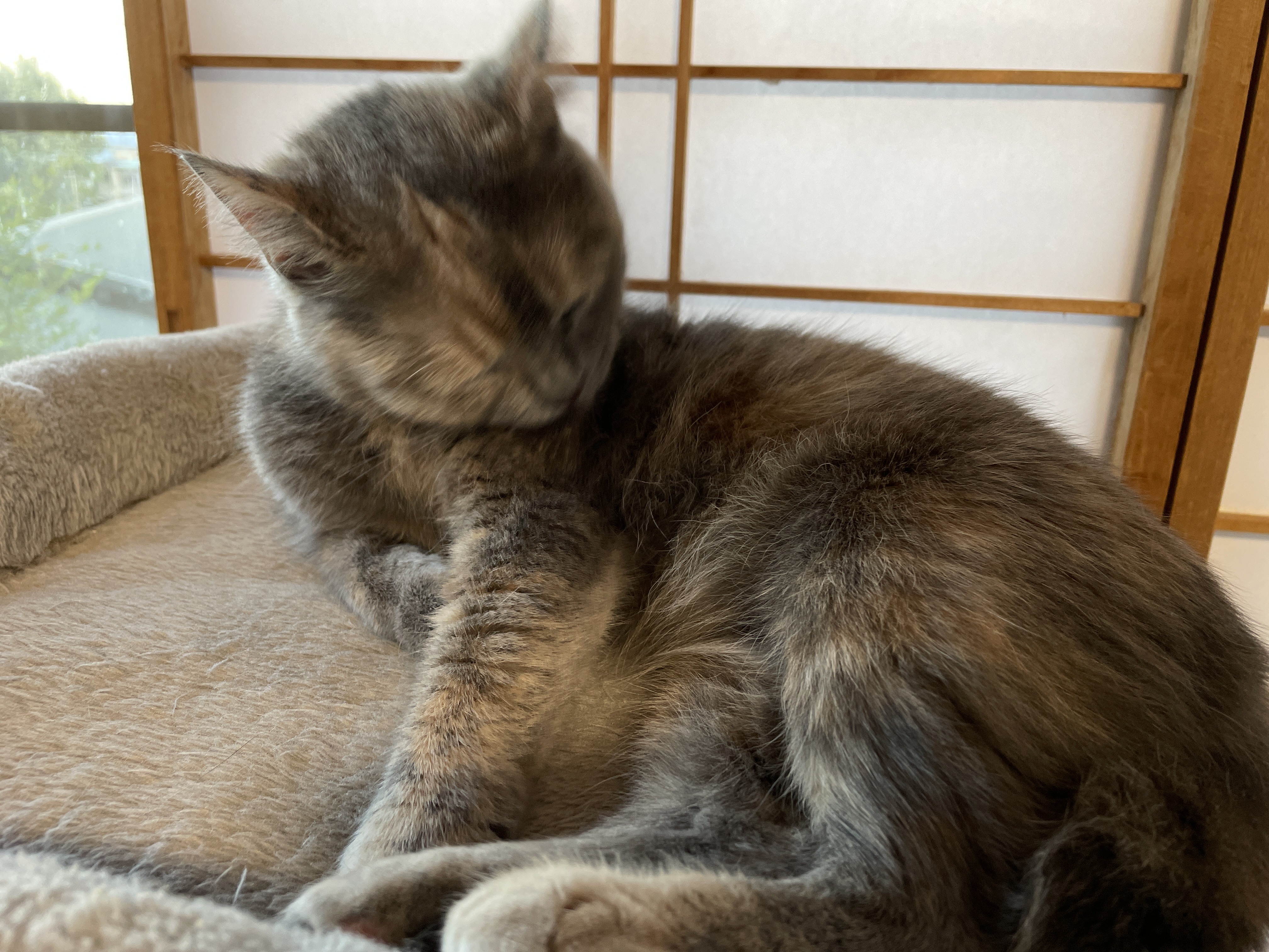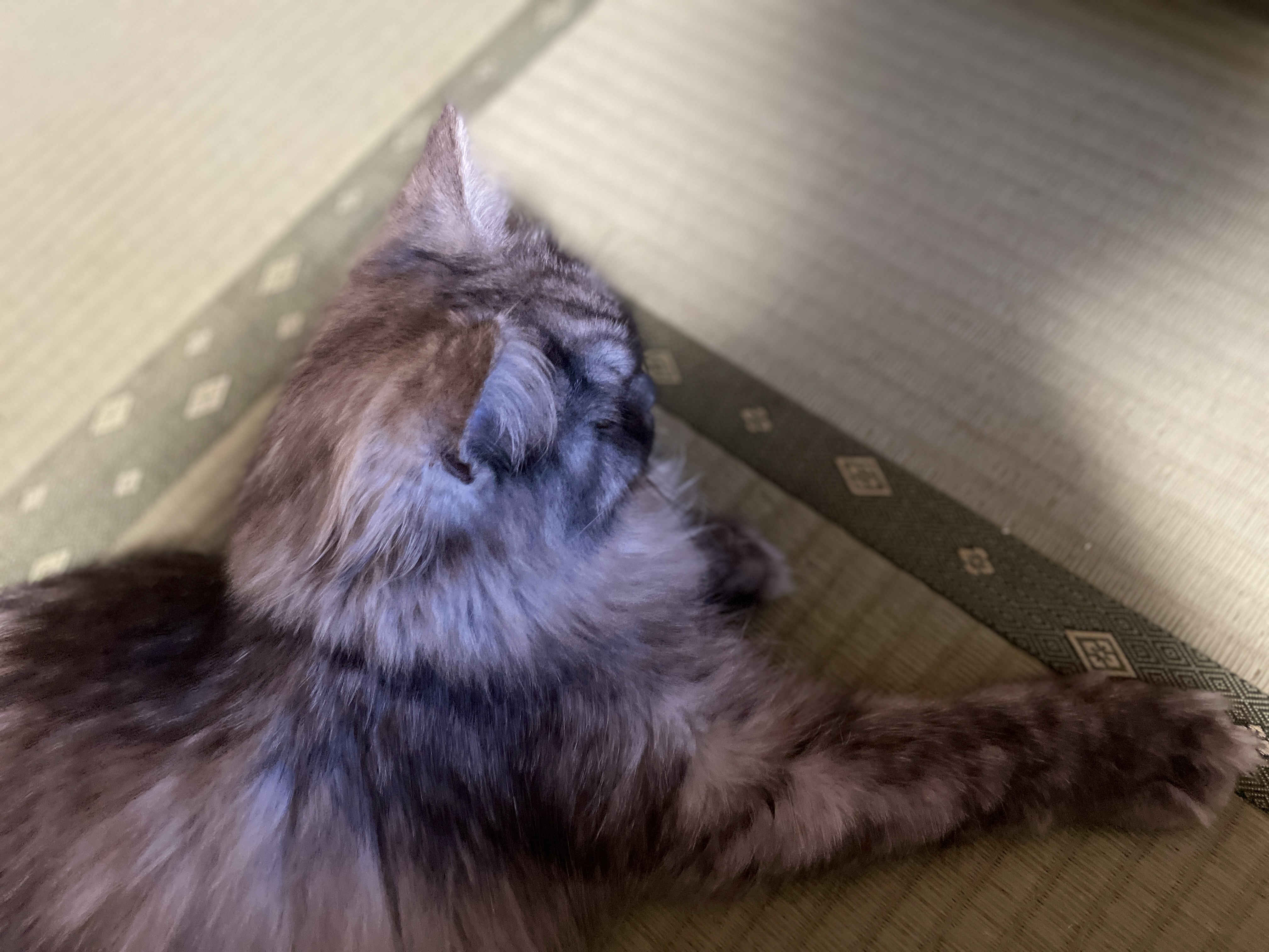 인기척에 깨었나 자다가 그루밍 하는데 -