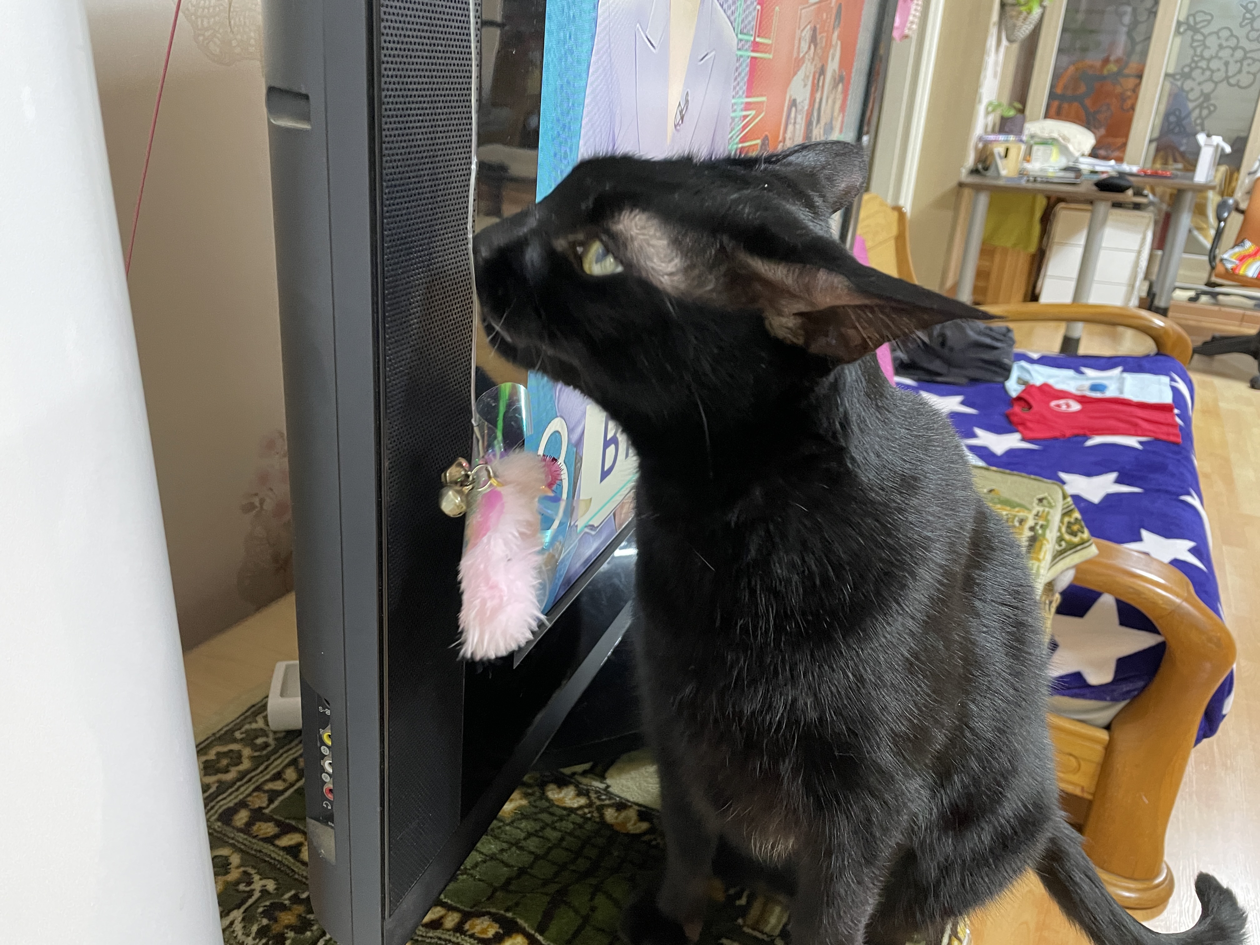 좀더 놀고 싶은지 티비 화면을 옹뎅이로 가립니다.