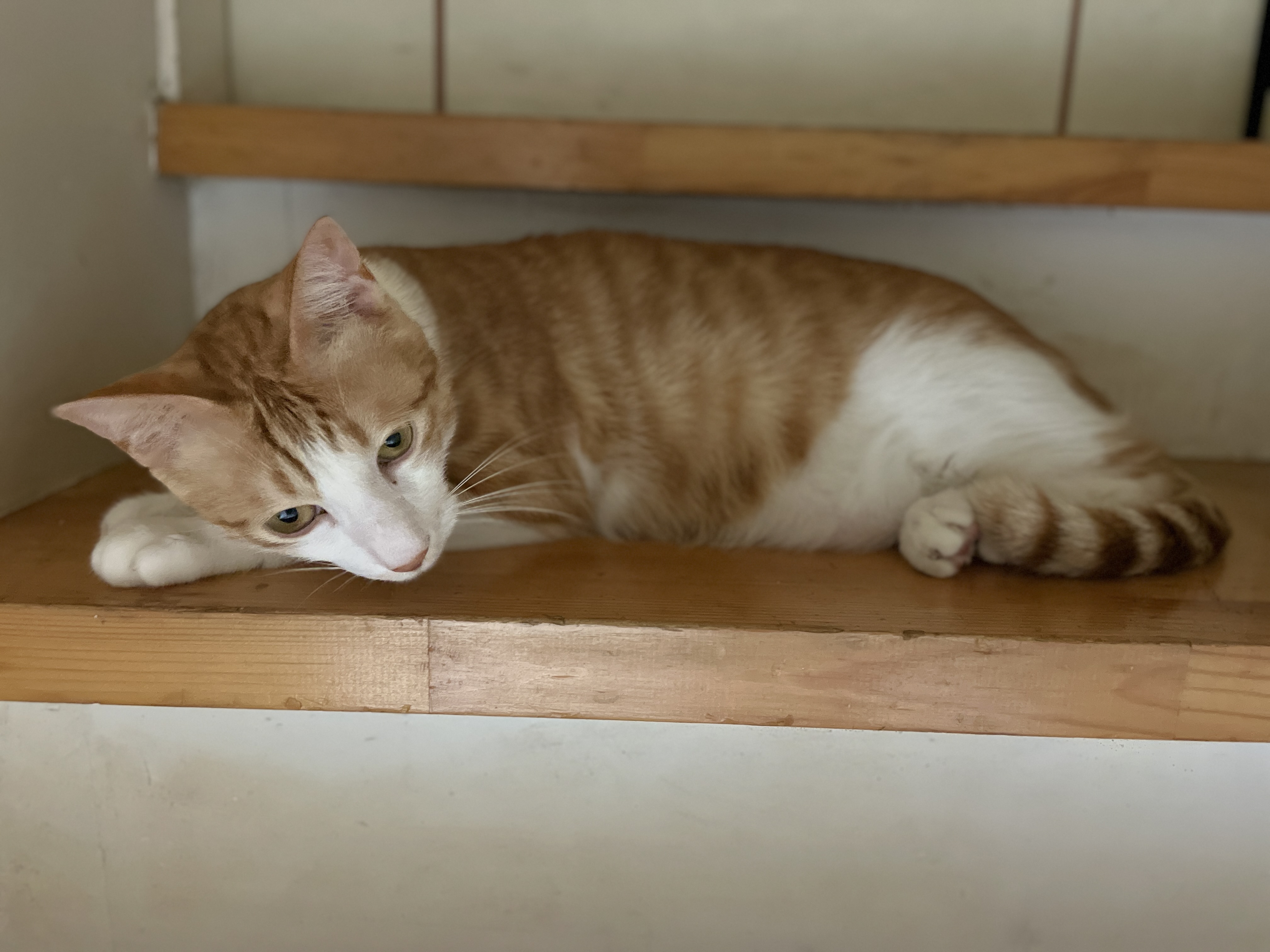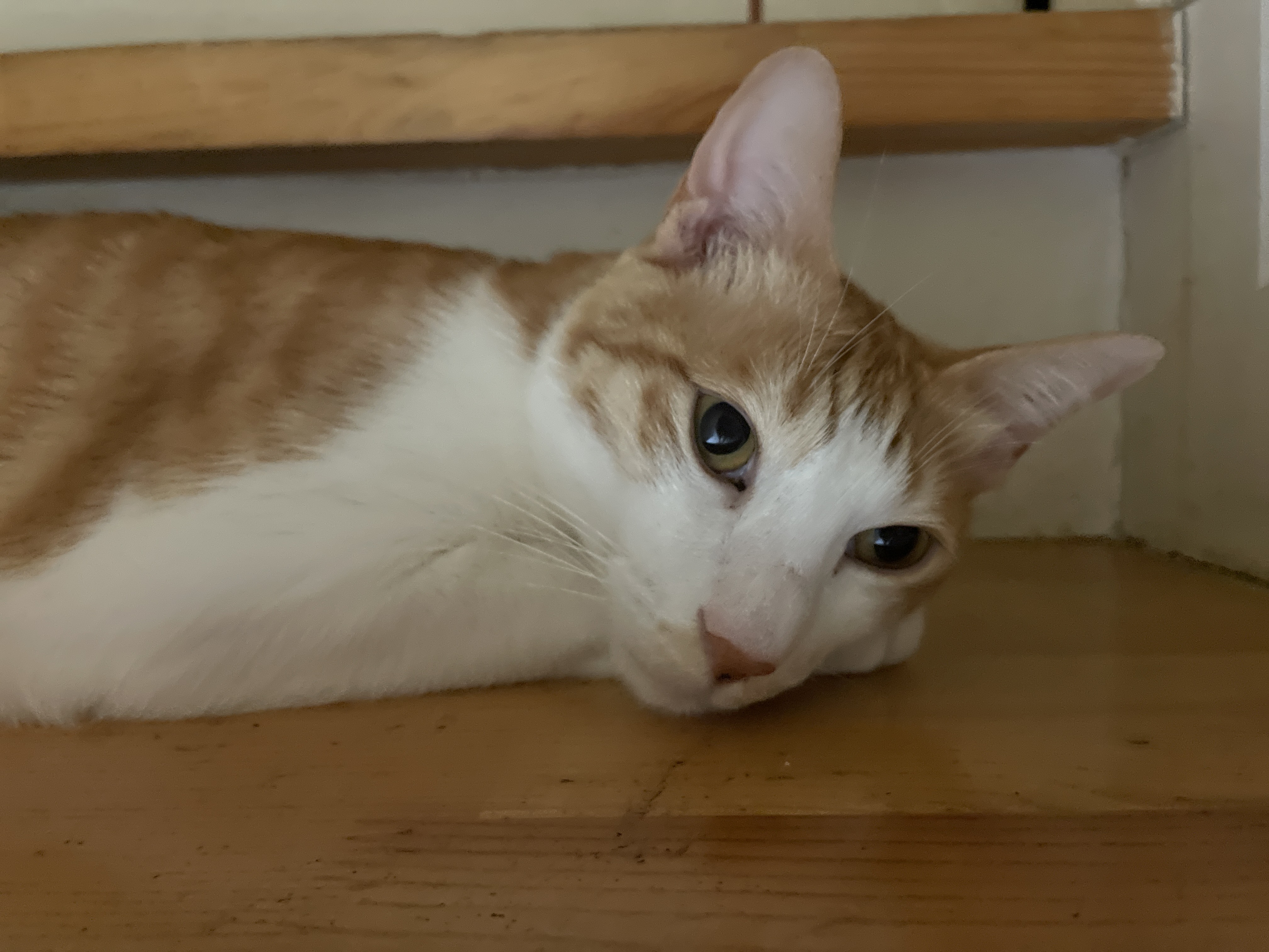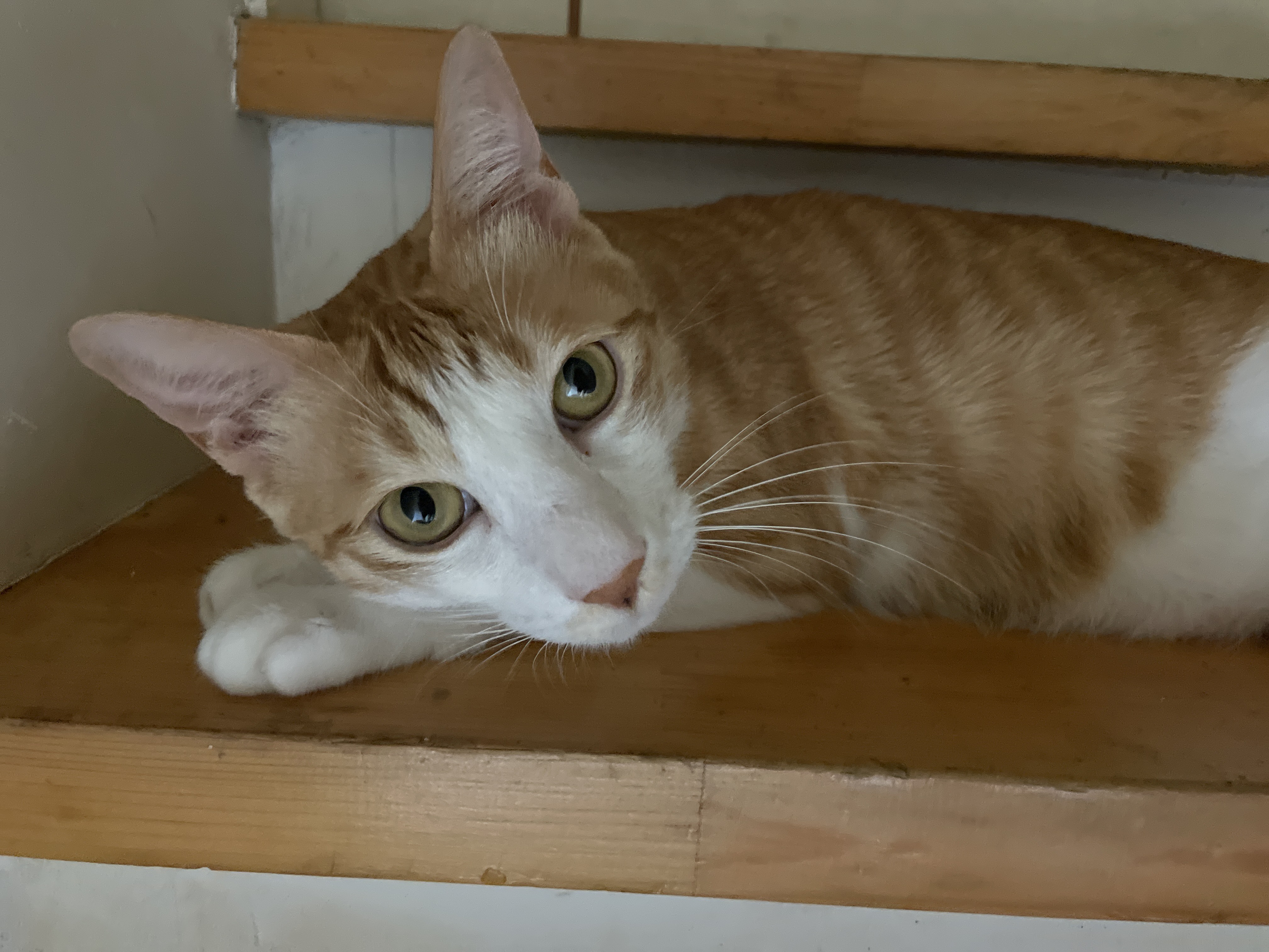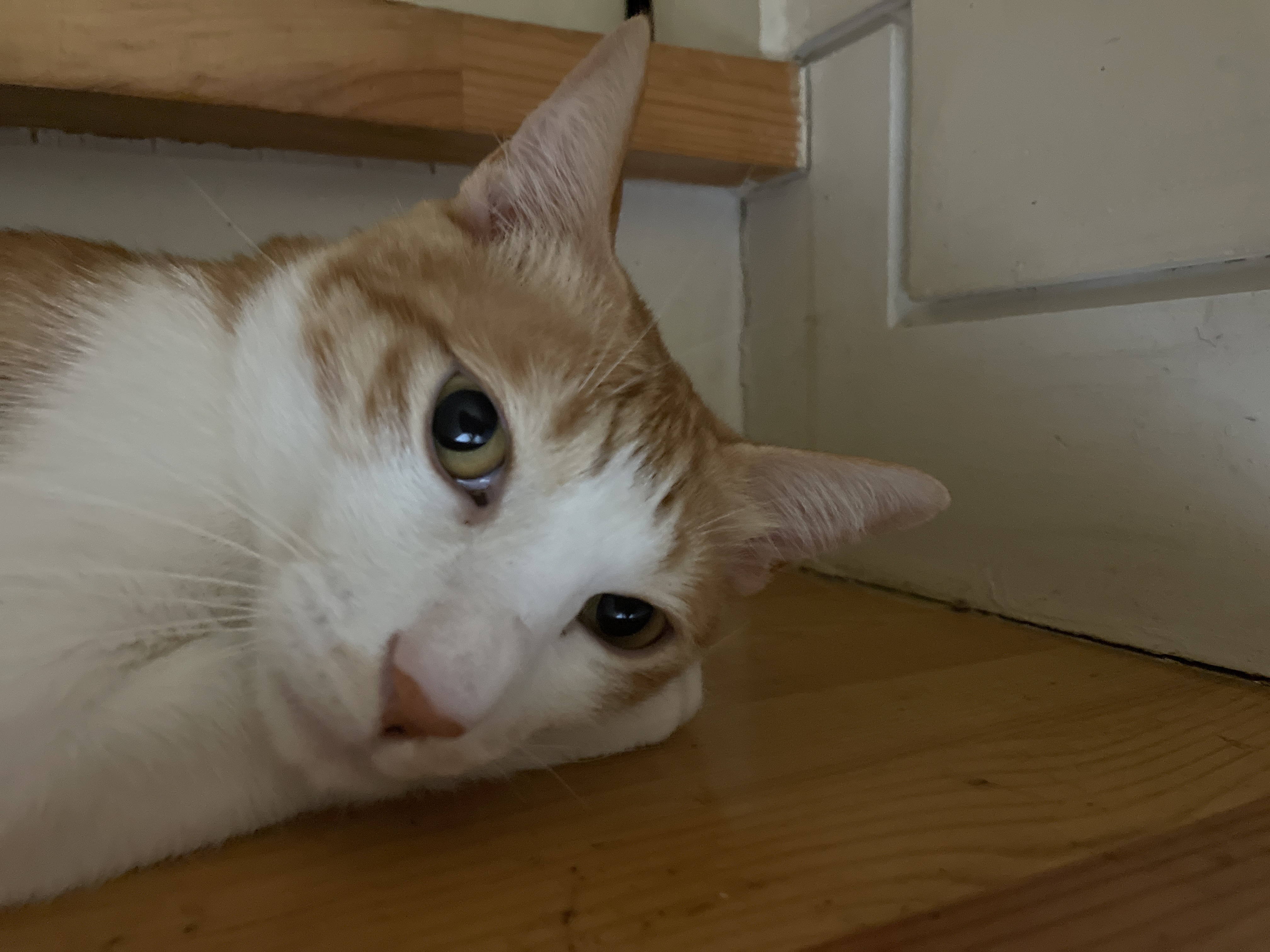 감자는 내가 놀아주는건 너무 격해서 무섭고 짜증나는지 계단 위로 대피