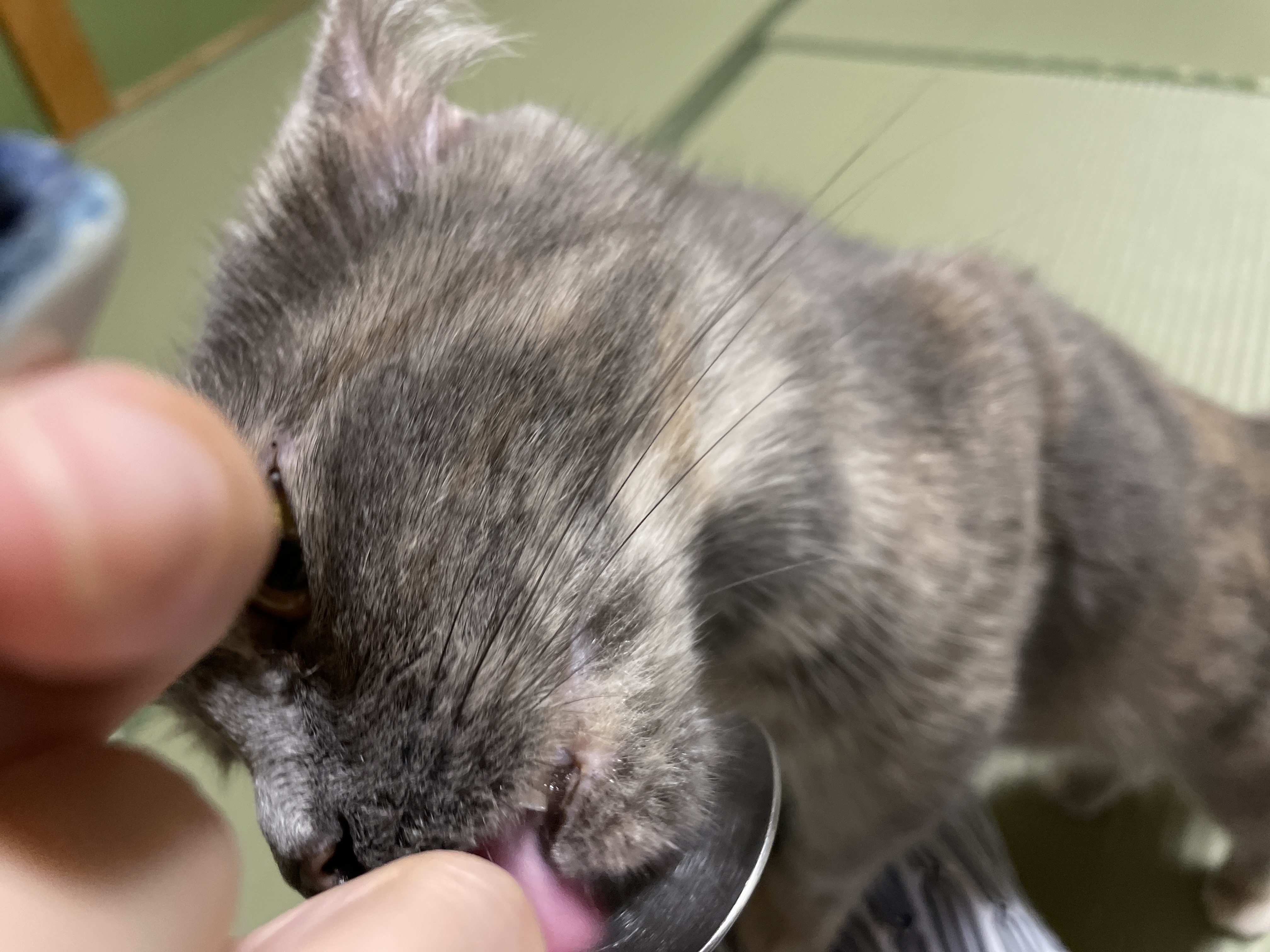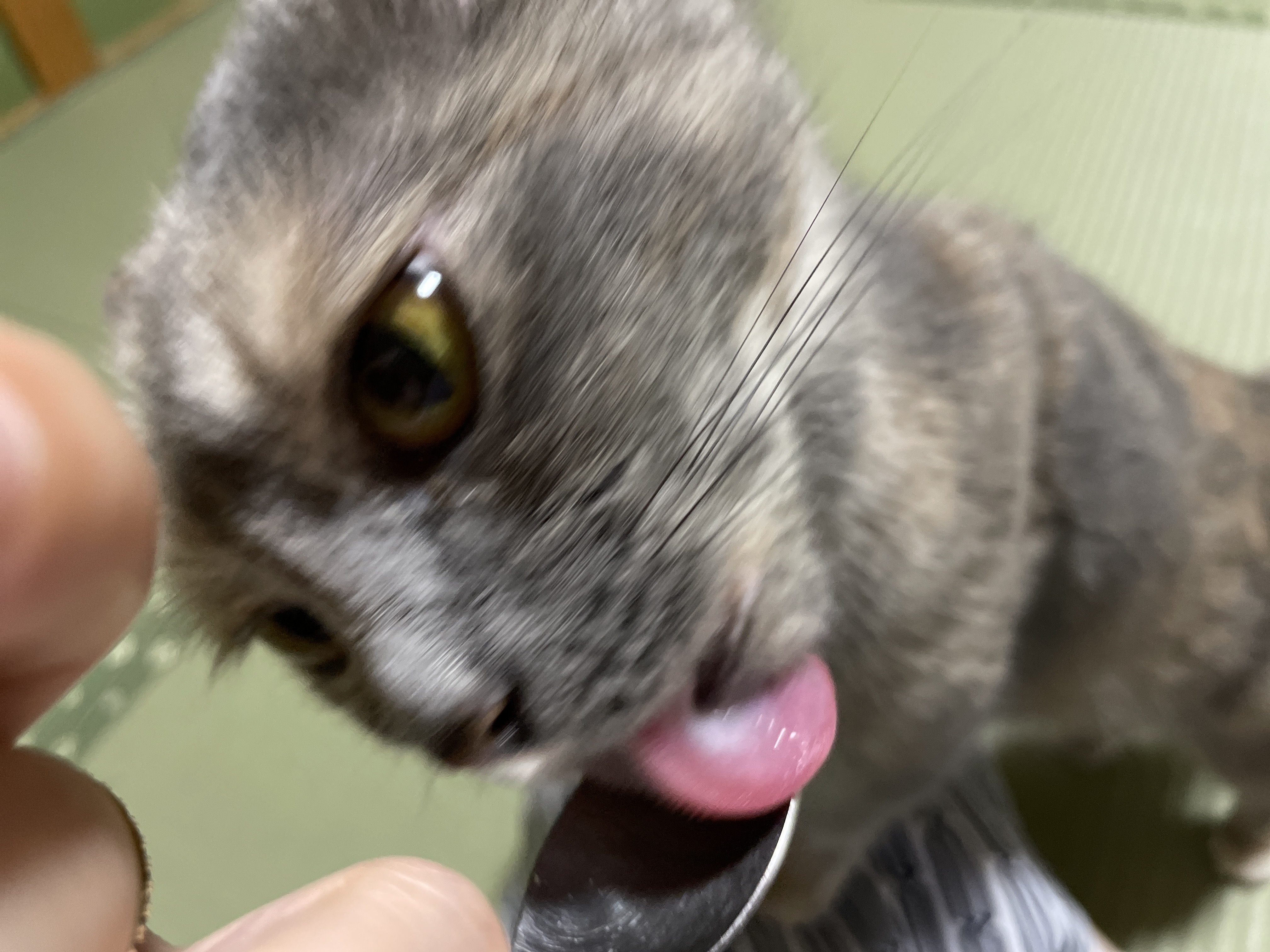 자는데 쓰담해줬더니 어떨결에 핥아줬던 그 아이입니다.