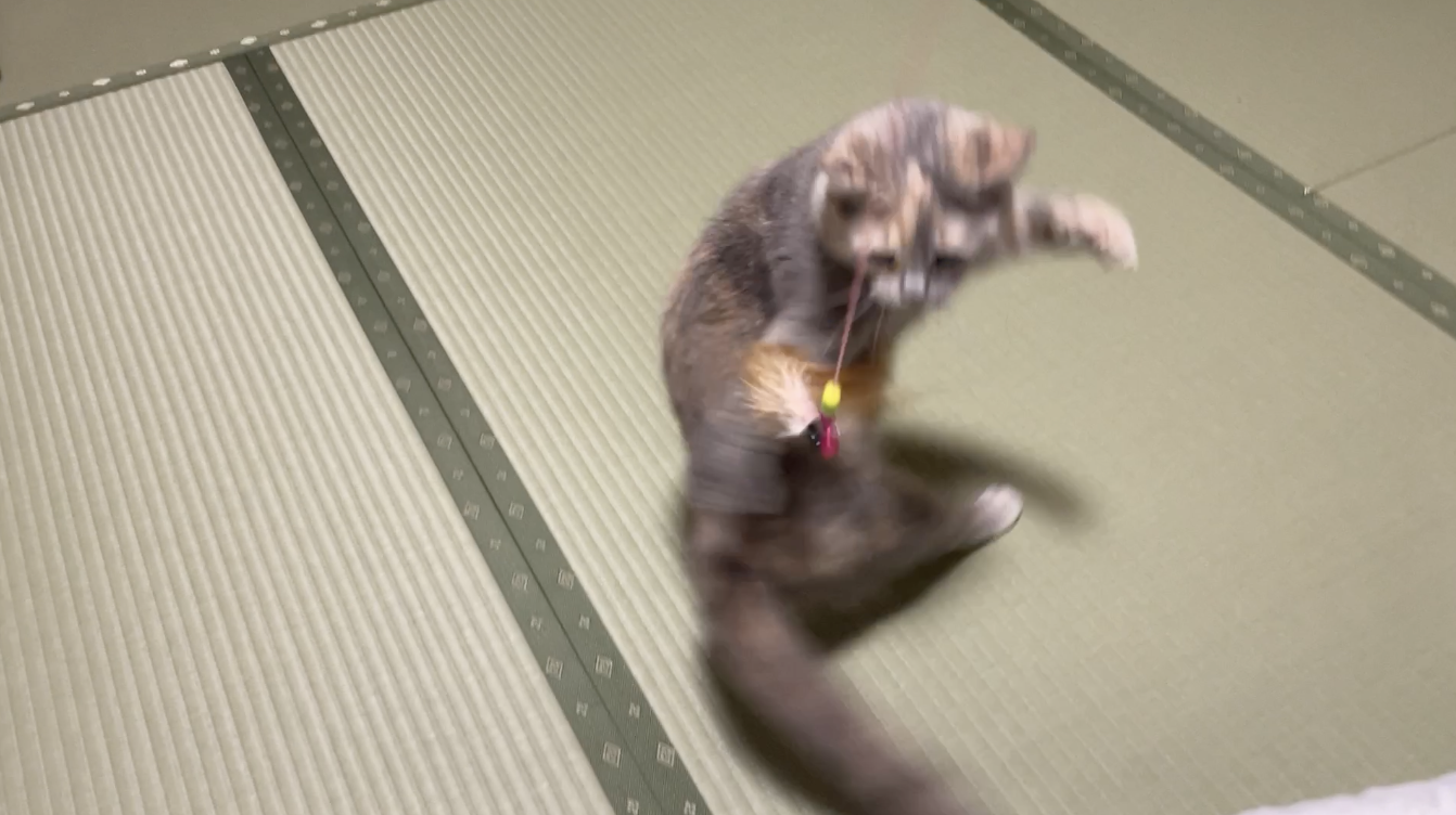 집사의 난리로 낚시대에 관심을 보이는 요시노.