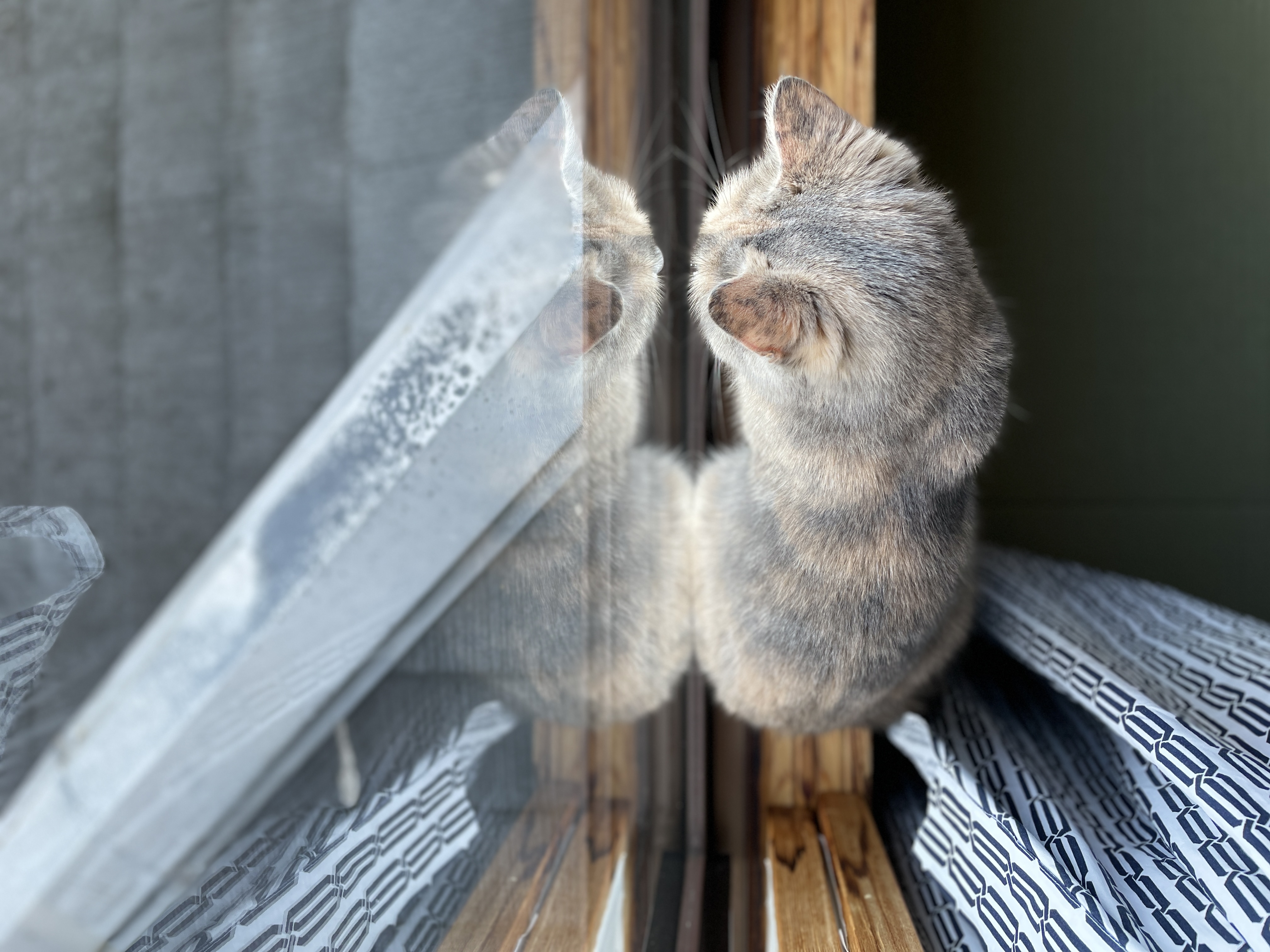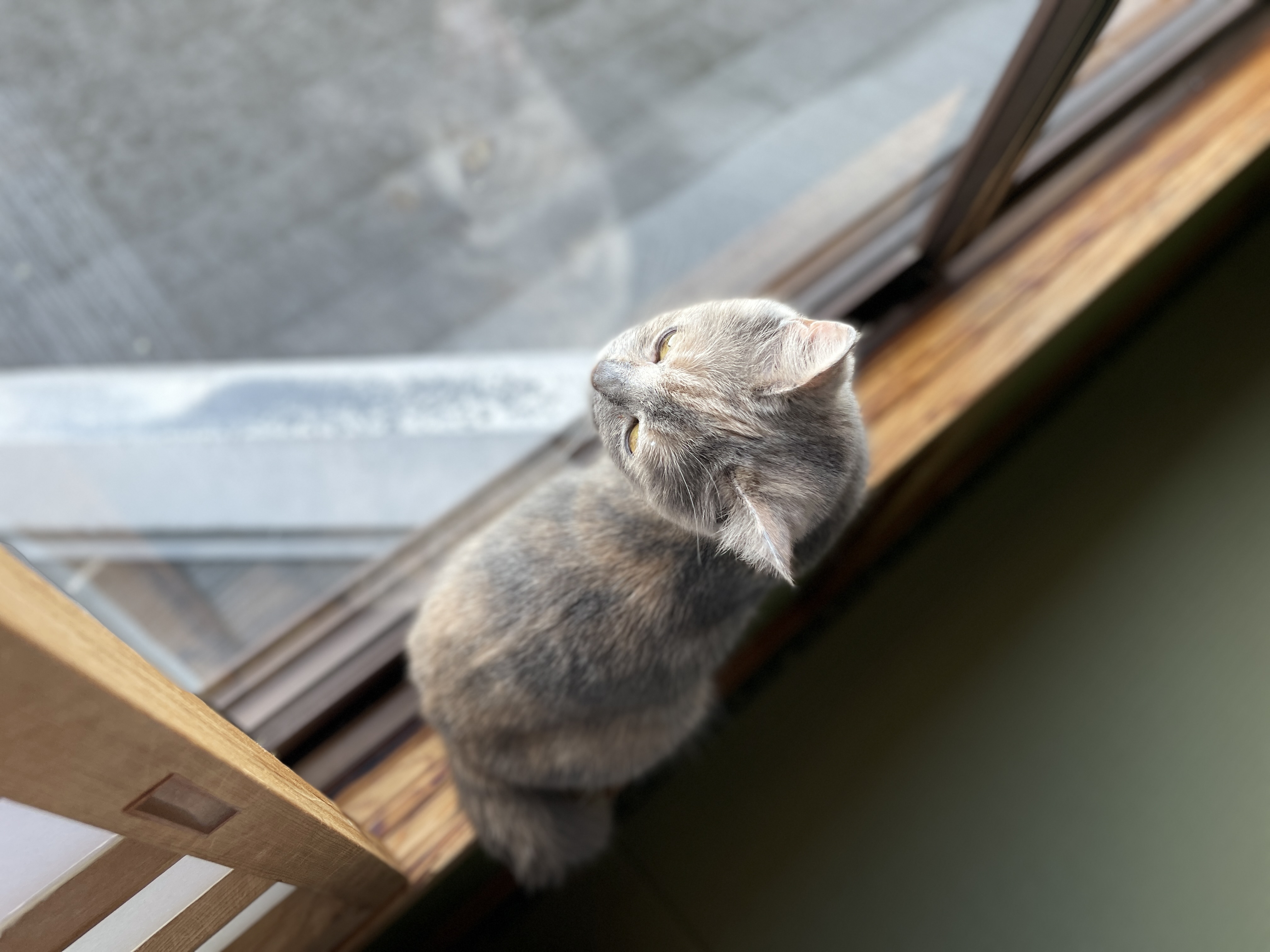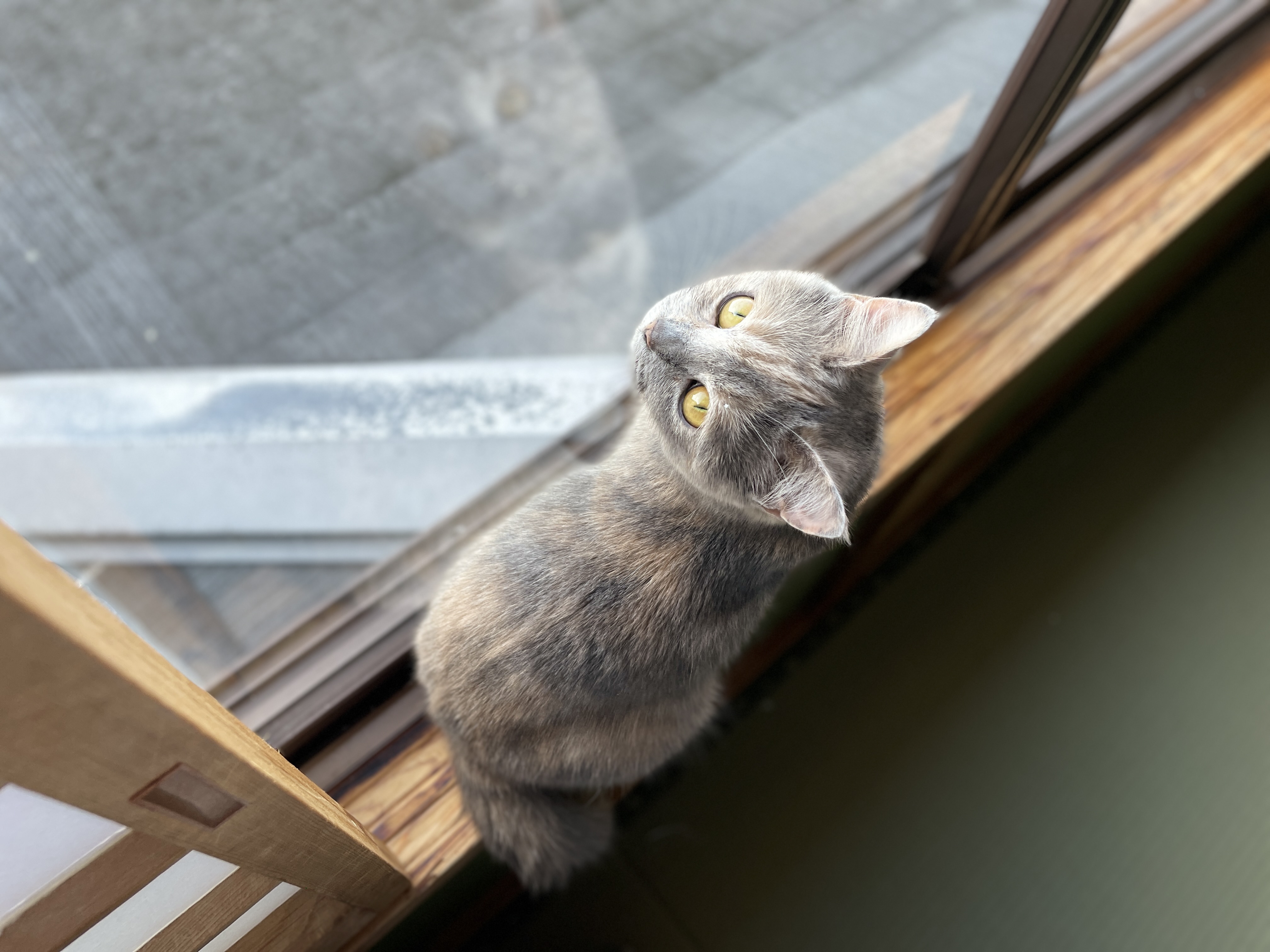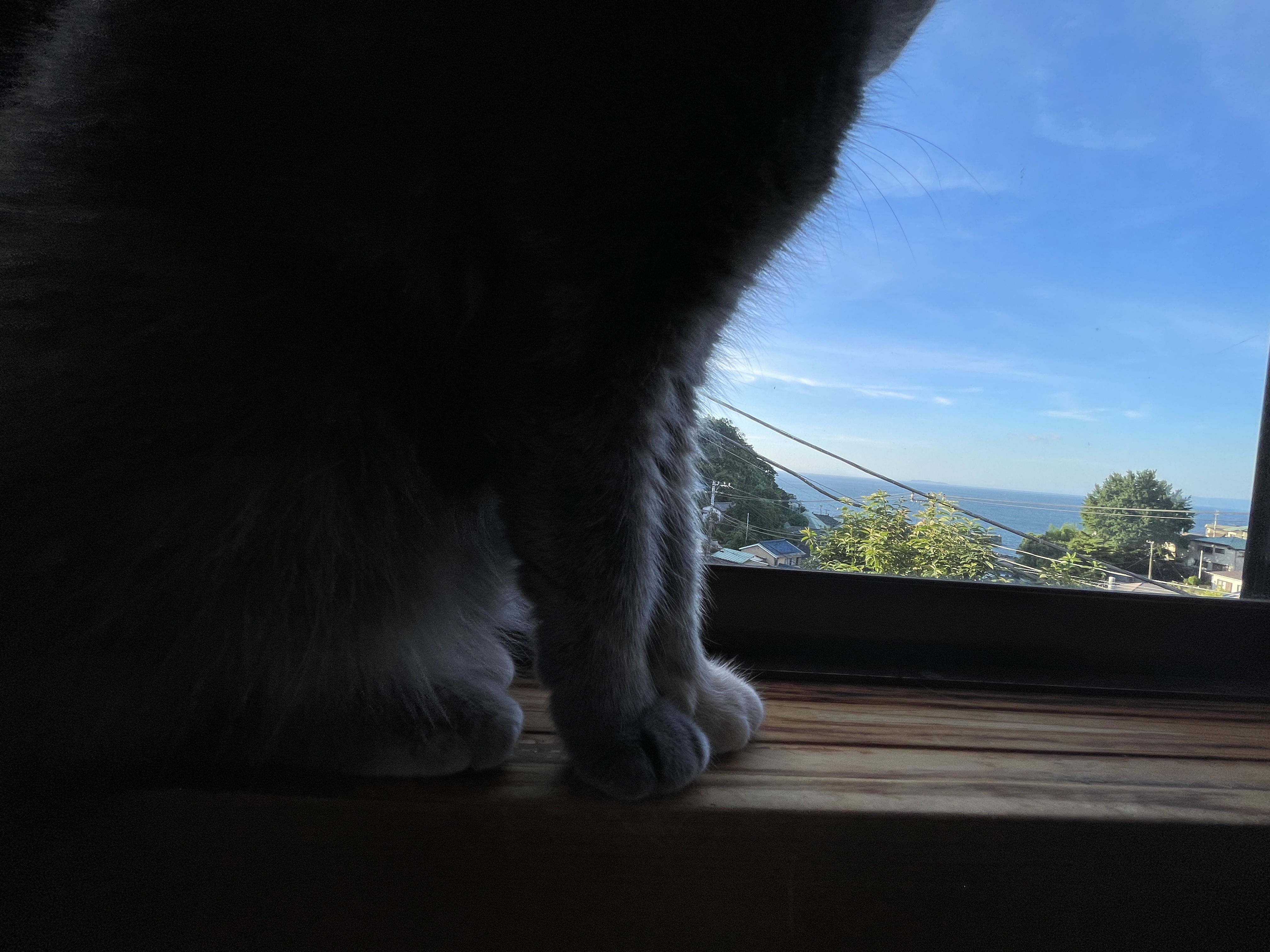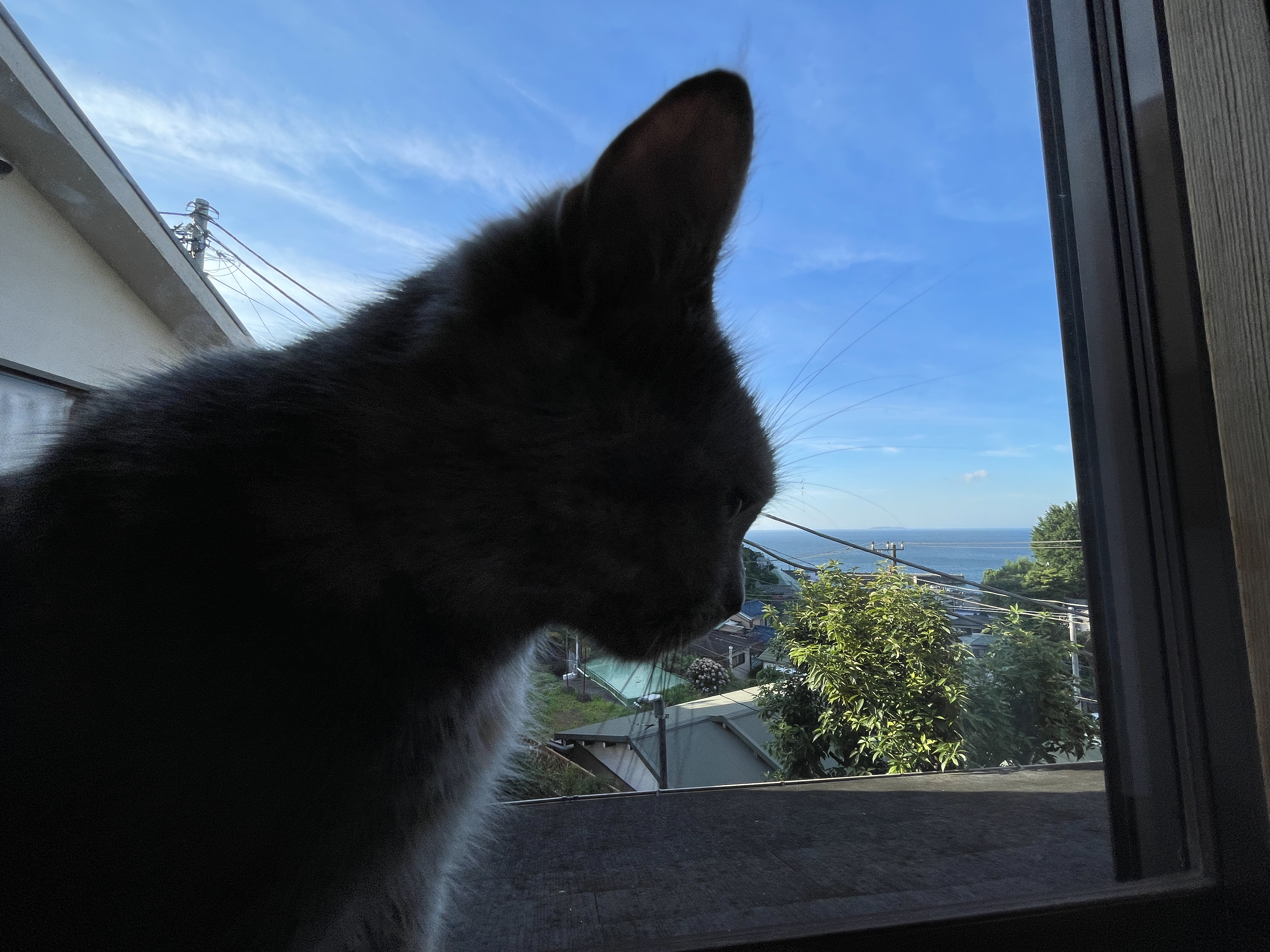 냥이와 묵을 수 있는 숙박에서 아침이 밝고 안쪽 덧문을 열어줬더니 바로 뷰 감상 하시는 낭만 고양이 요시노 님