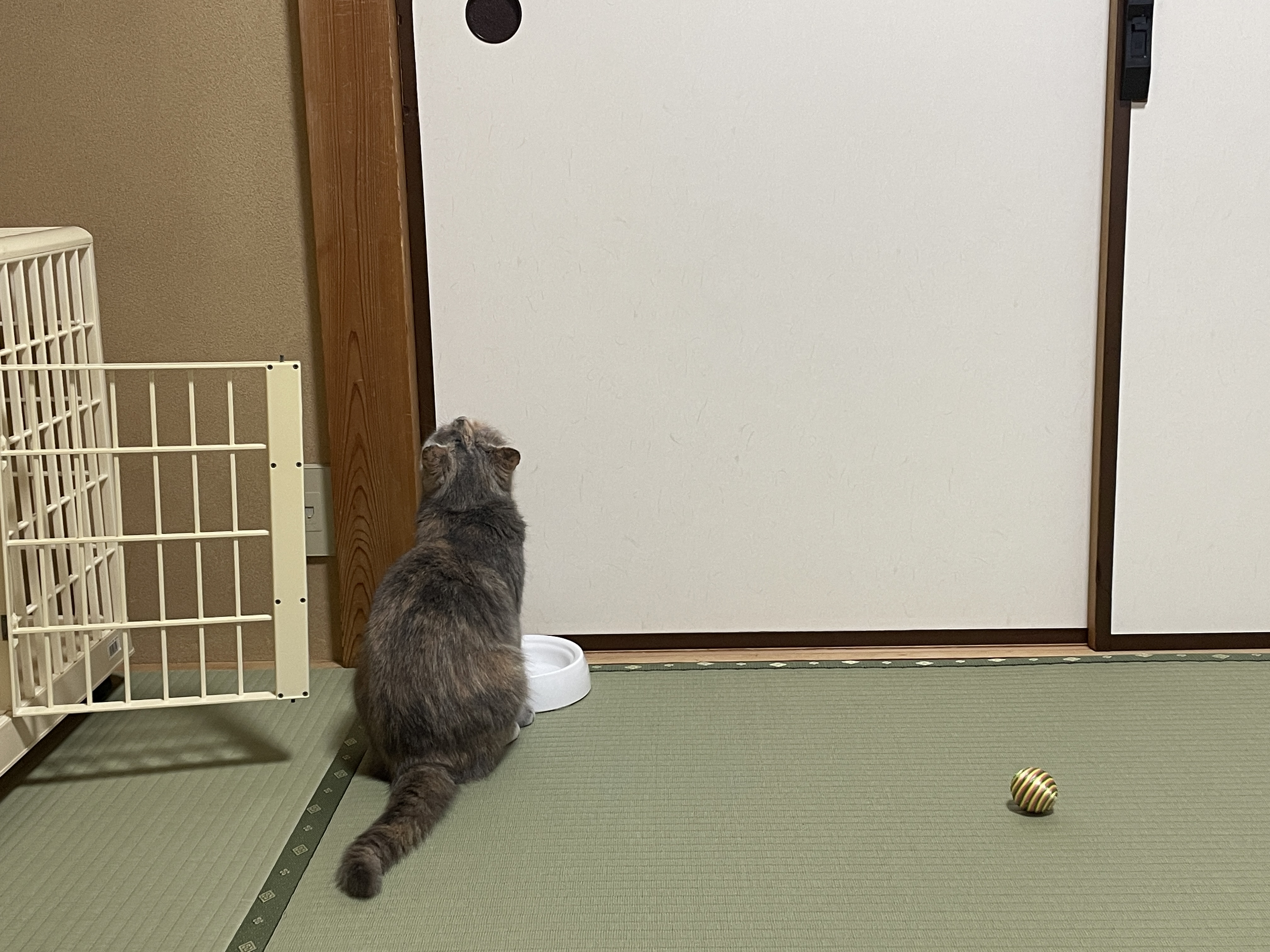 다른 방들에도 냥이들이 도착하고 있어서 안내해주는 소리가 들려서 신경 쓰이는 요시노.