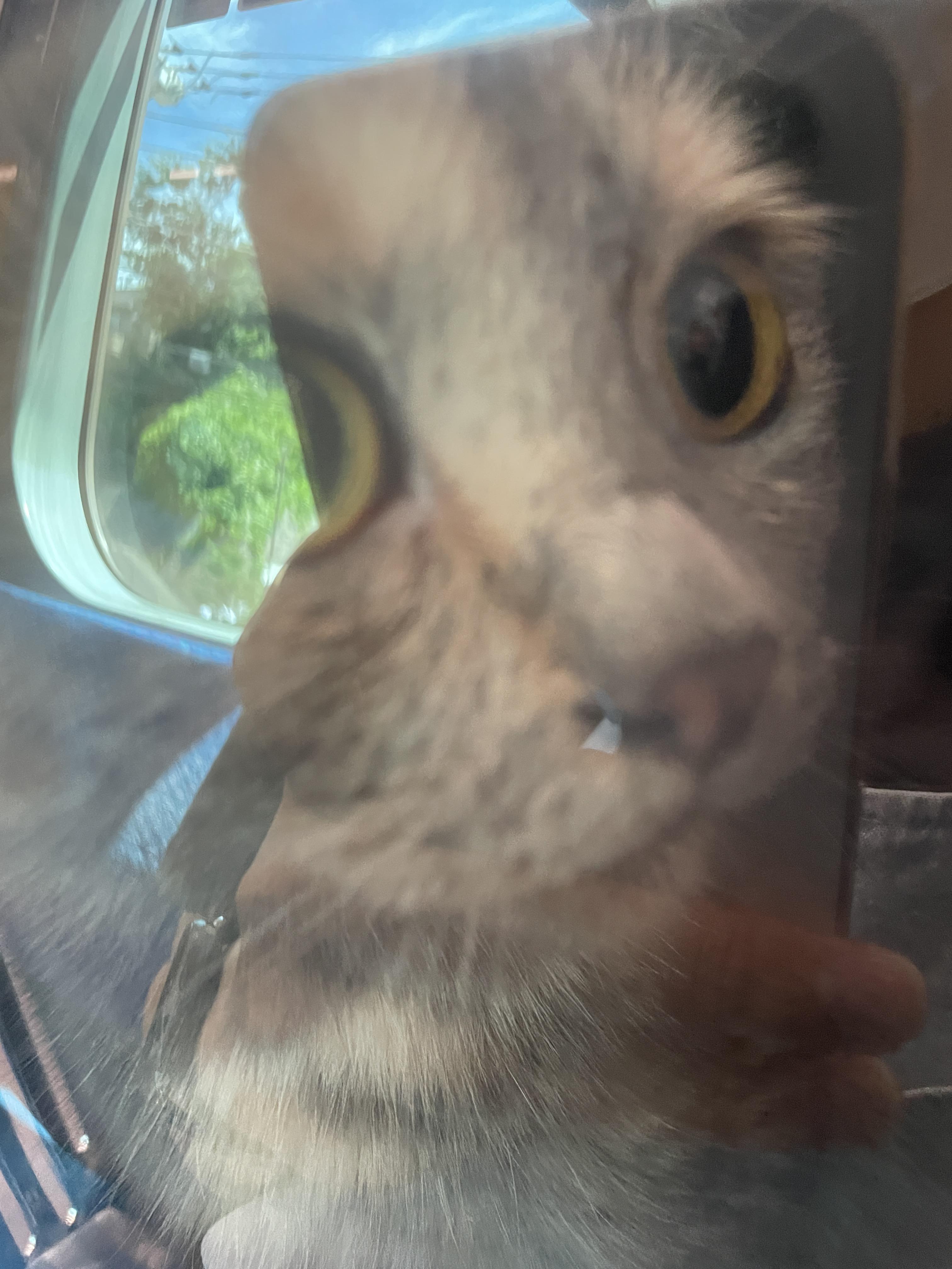앞에가 밖에 풍경 볼 수 있는 거라 자극이 많아 긴장할 것 같아서 손수건으로 가려드림