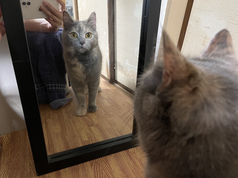 요리조리 거울 속 냥이를 쳐다보는 중