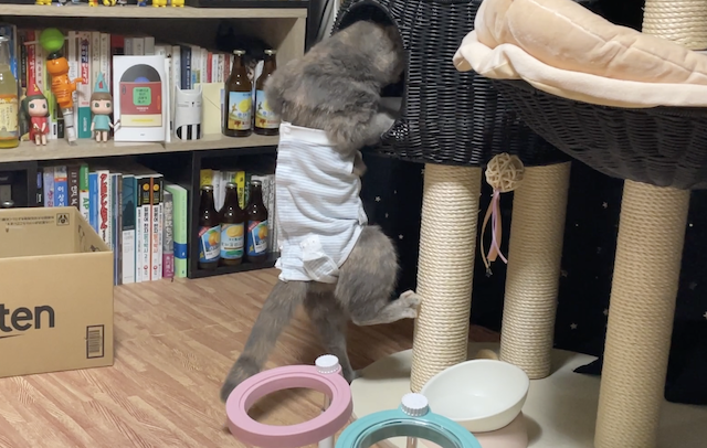 낮은 캣타워로 타겟을 바꿔봅니다.