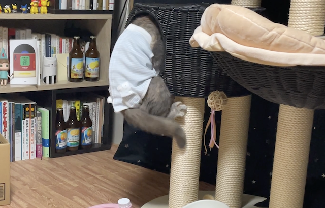글고 순식간이라 눈치 못했었는데 ㅋㅋ 앞발 둘다 옷에서 빠져나옴 ㅋㅋ