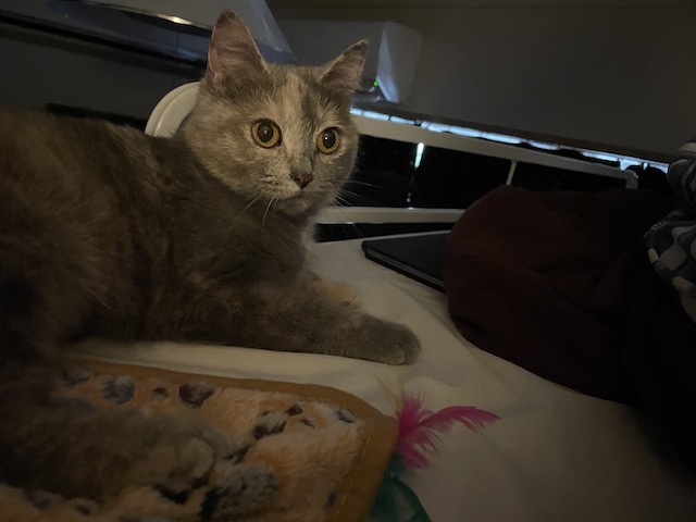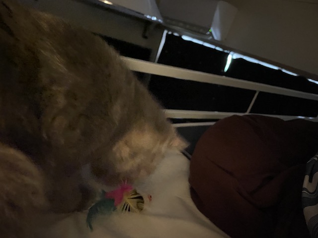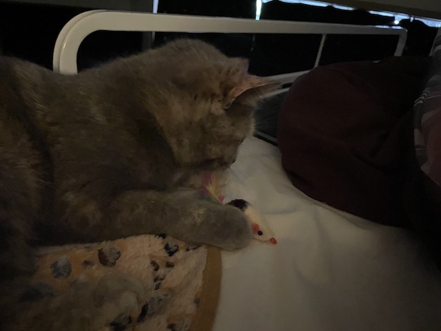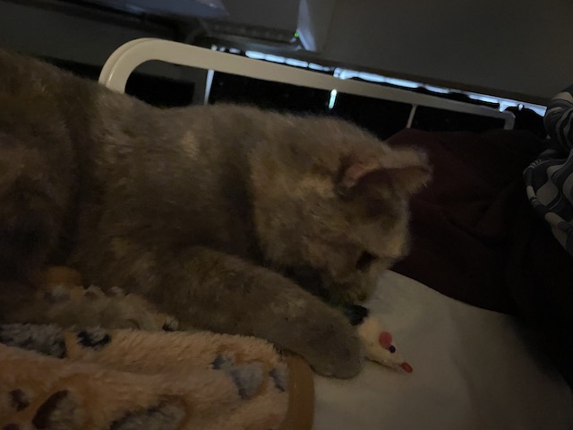 요즘 빠져있는 쥐돌이랑 우다다 하더니 침대까지 가지로 올라와버림