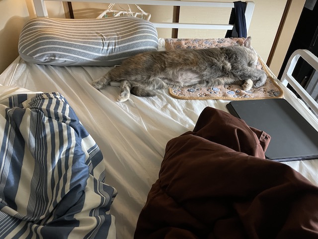 아침형 냥이 율무는 다시 꿀잠에 빠져드십니다.
