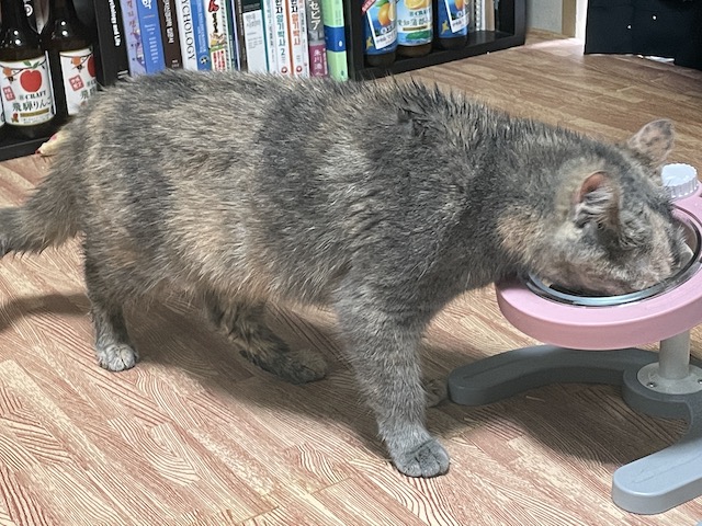 여기저기 물자국 남기고 댕기시더니 밥 먹는 중