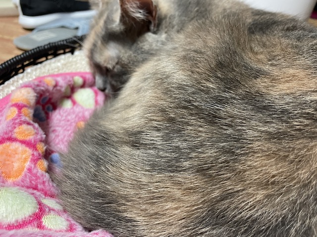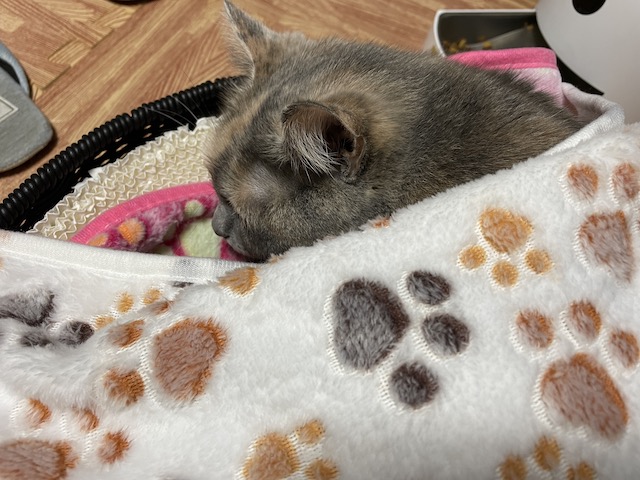결국 핑크 이불을 율무가 좋아하는 방석 위에 놓았더니 이동해 오심