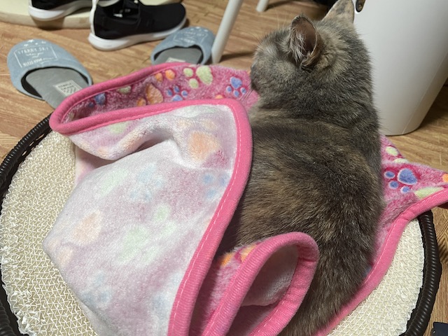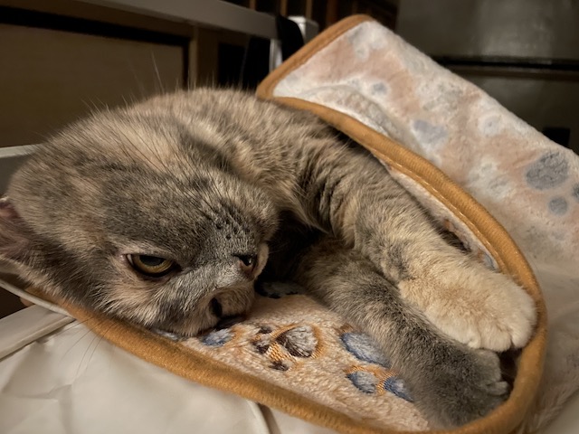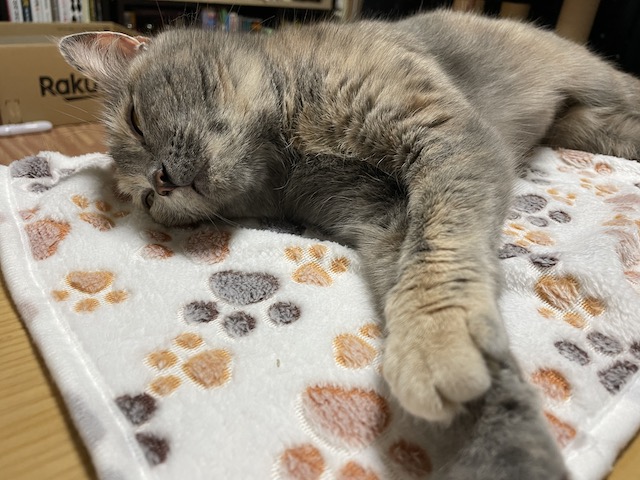 테이블에도 깔아두면 이불 위로 몸을 누이심