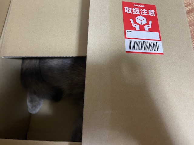 새로 도착한 택배 박스에 율무가 들어갔길래 닫았는데-