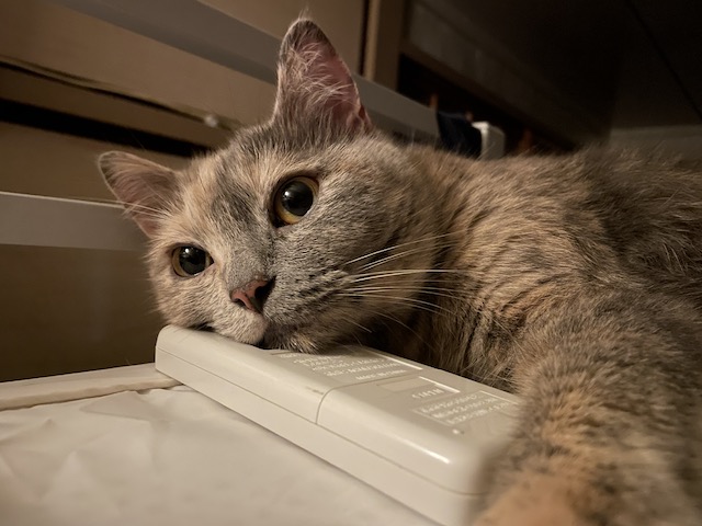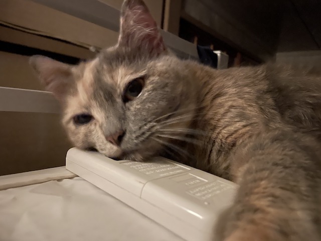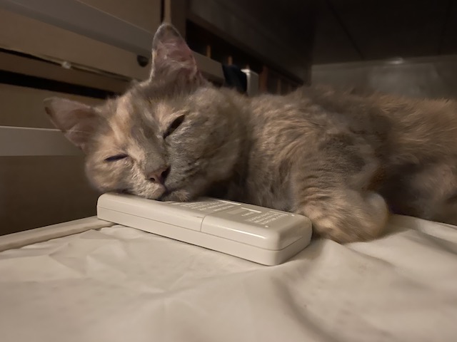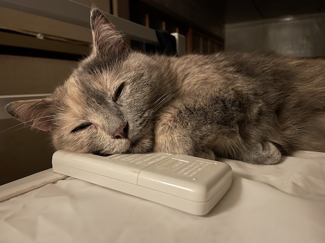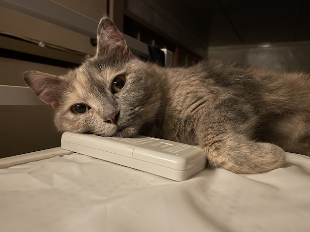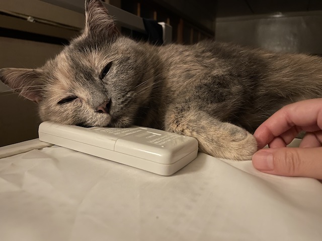 이제 에어컨 리모컨을 베개삼아 누워봅니다.