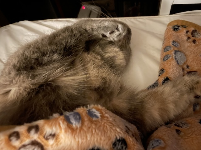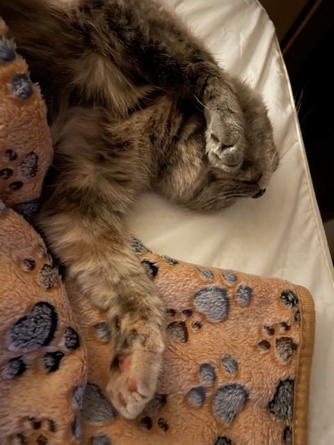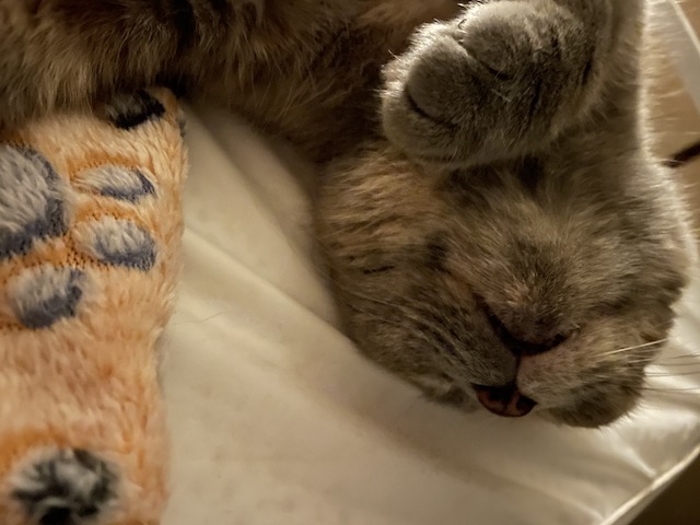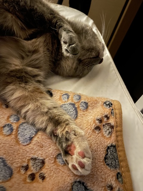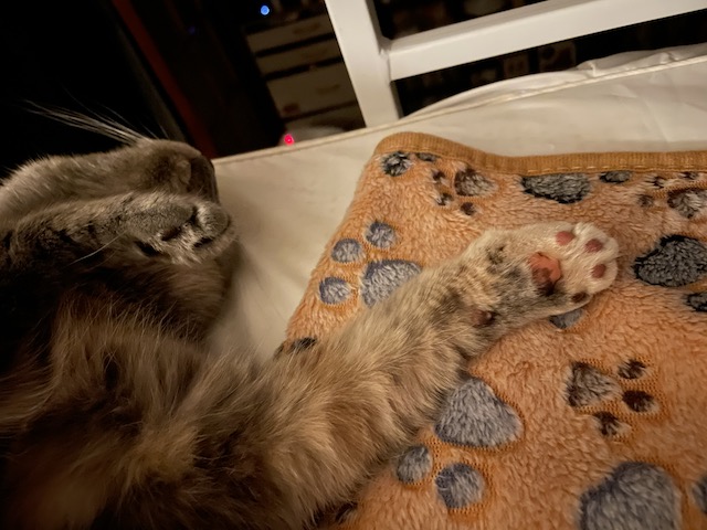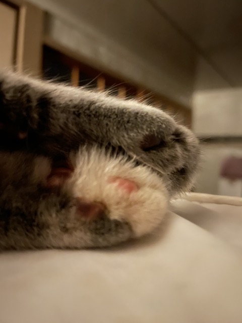 그루밍하고 몸을 쭈욱~ 하고 뻗으면 발이 닿습니다.