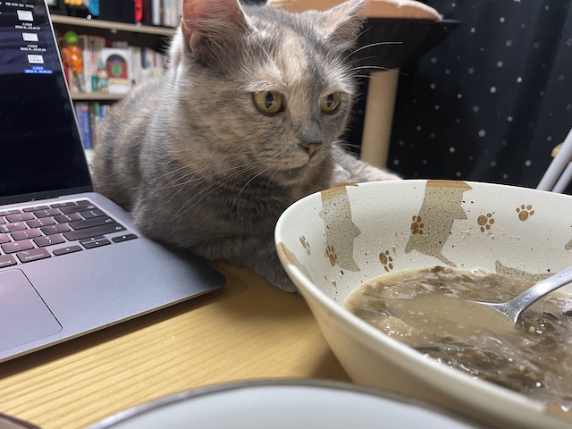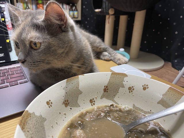 오늘도 집사의 식사는 맛나 보입니다.
