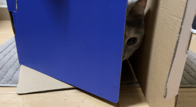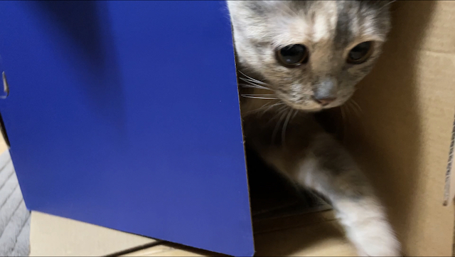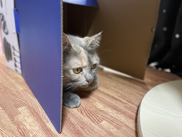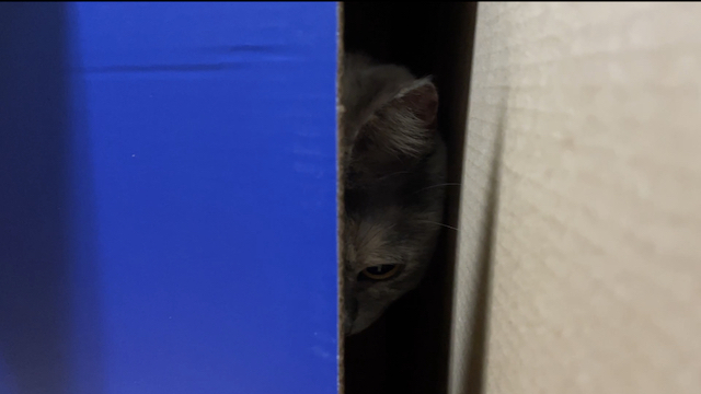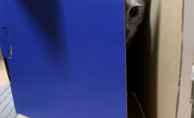 박스가 맘에 드신 듯 하니 방 안으로 옮겨 드렸습니다.