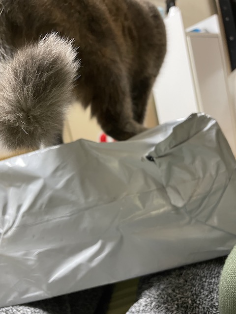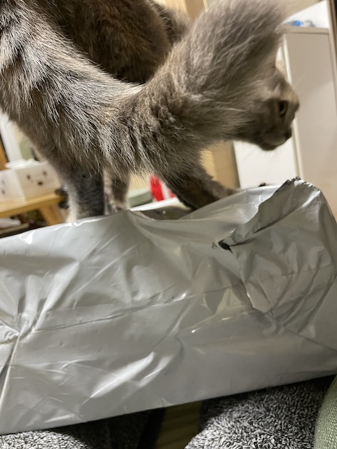질투에 눈이먼 집사는 도착한 택배를 친구 위에 올려놔 버립니다.