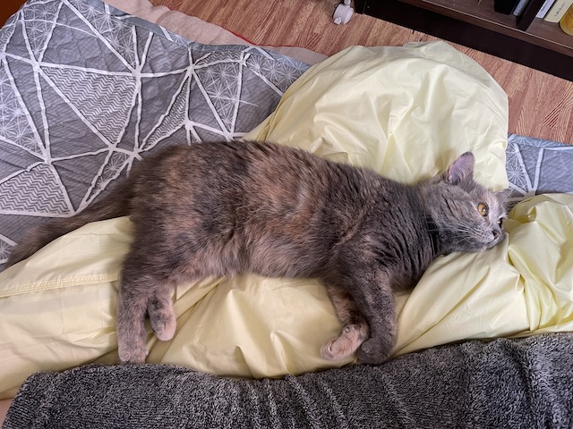 친구 옆에서 뒹굴하던 집사가 일어났더니