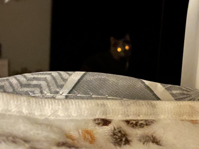 침대 머리 위 조명을 켜고 야간 모드로 찍었더니