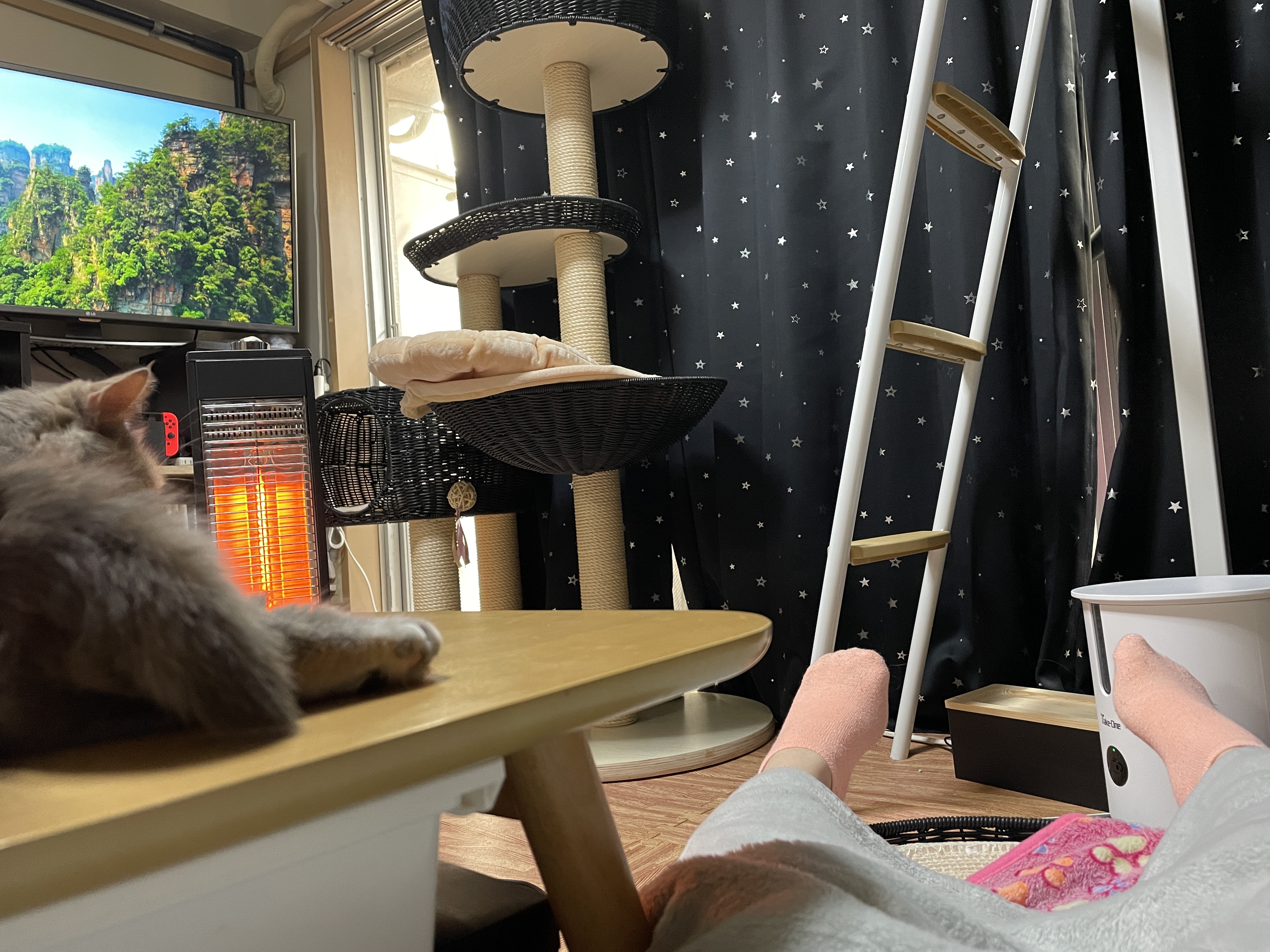 율무의 애착 방석은 집사의 족발이 자리하고 있어서 차선책으로 이동하심 ㅋㅋ