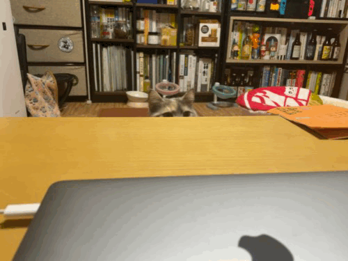 그건 바로 율무가 집사가 신경 쓰여서 테이블 밑에서 귀랑 눈 반만 쫑끗~ 하고 있는 순간