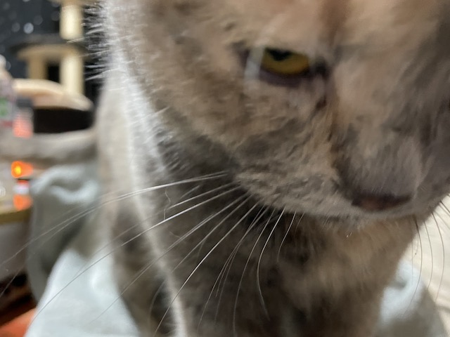 새벽 늦게까지 깨 있던 집사의 무릎을 유심히 보더니