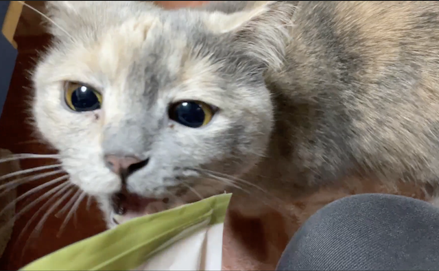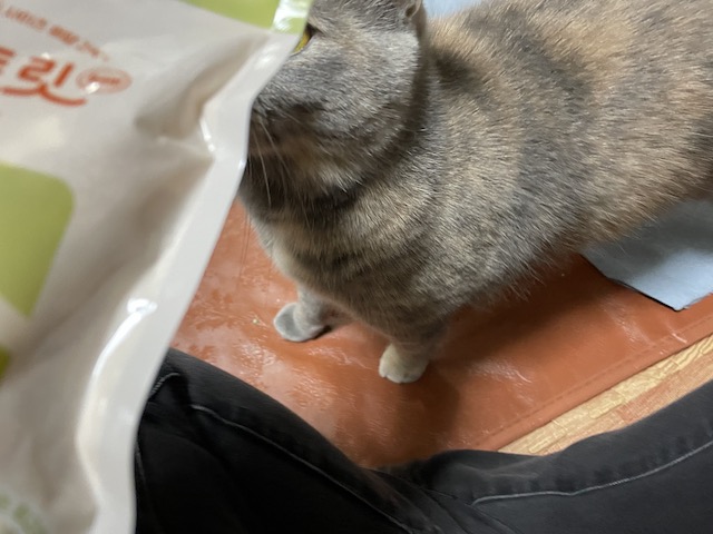 집사 손에 침까지 뭍혀가며 맛있게 드심 ㅎㅎ