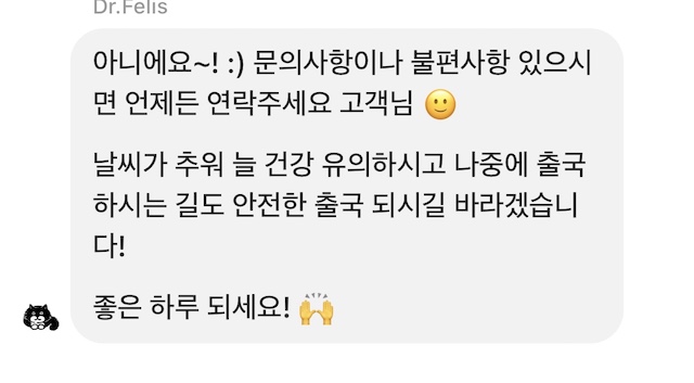 부분도 언급했더니 안전한 출국길 되시라는 코멘트까지!