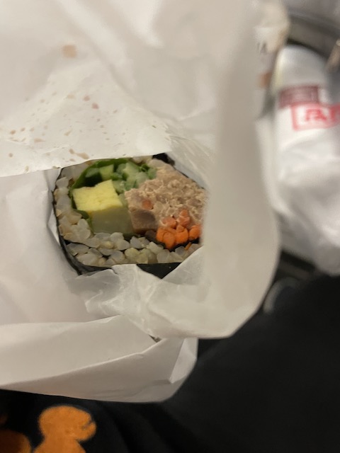 그제서야 배가 고파져서 김밥 개봉 두둥