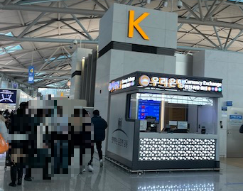 저런 간이 카운터도 있고 왼쪽에 또 우리은행 카운터가 있어서 인터넷으로 환전 신청해두면