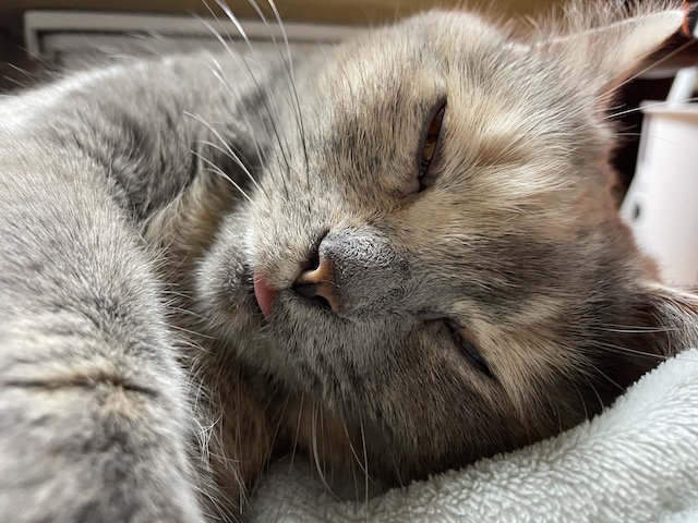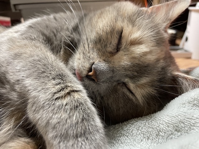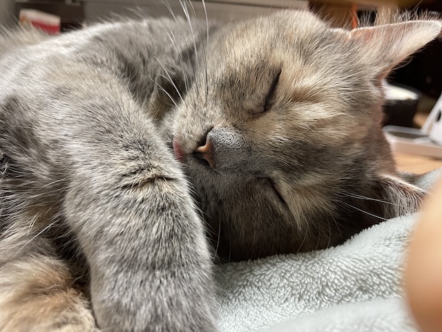 집사의 폭신한 무릎 침대에서 꿀잠 중인 율무