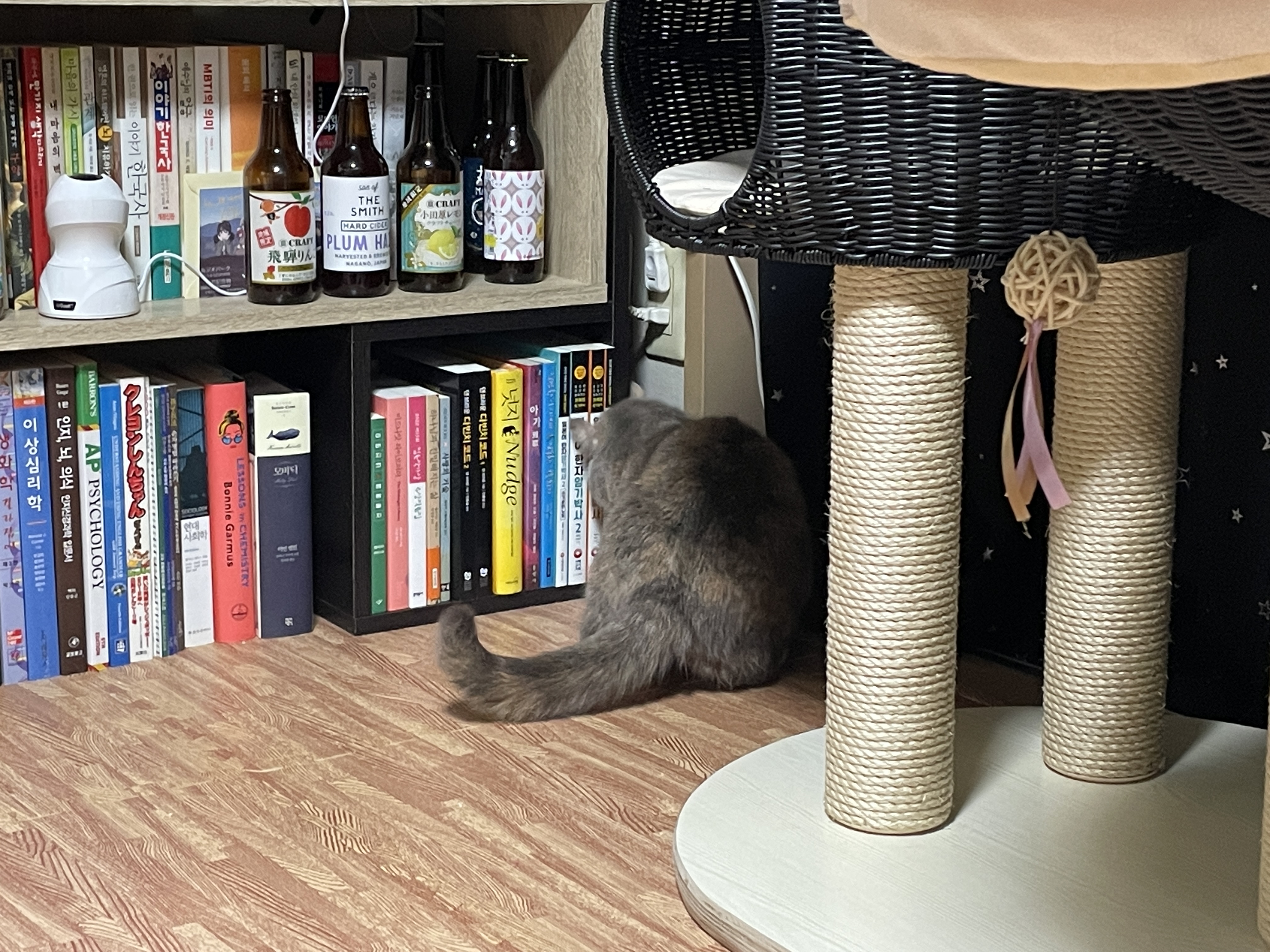 전에 가지고 놀다 넣은 쥐돌이를 꺼내신 듯