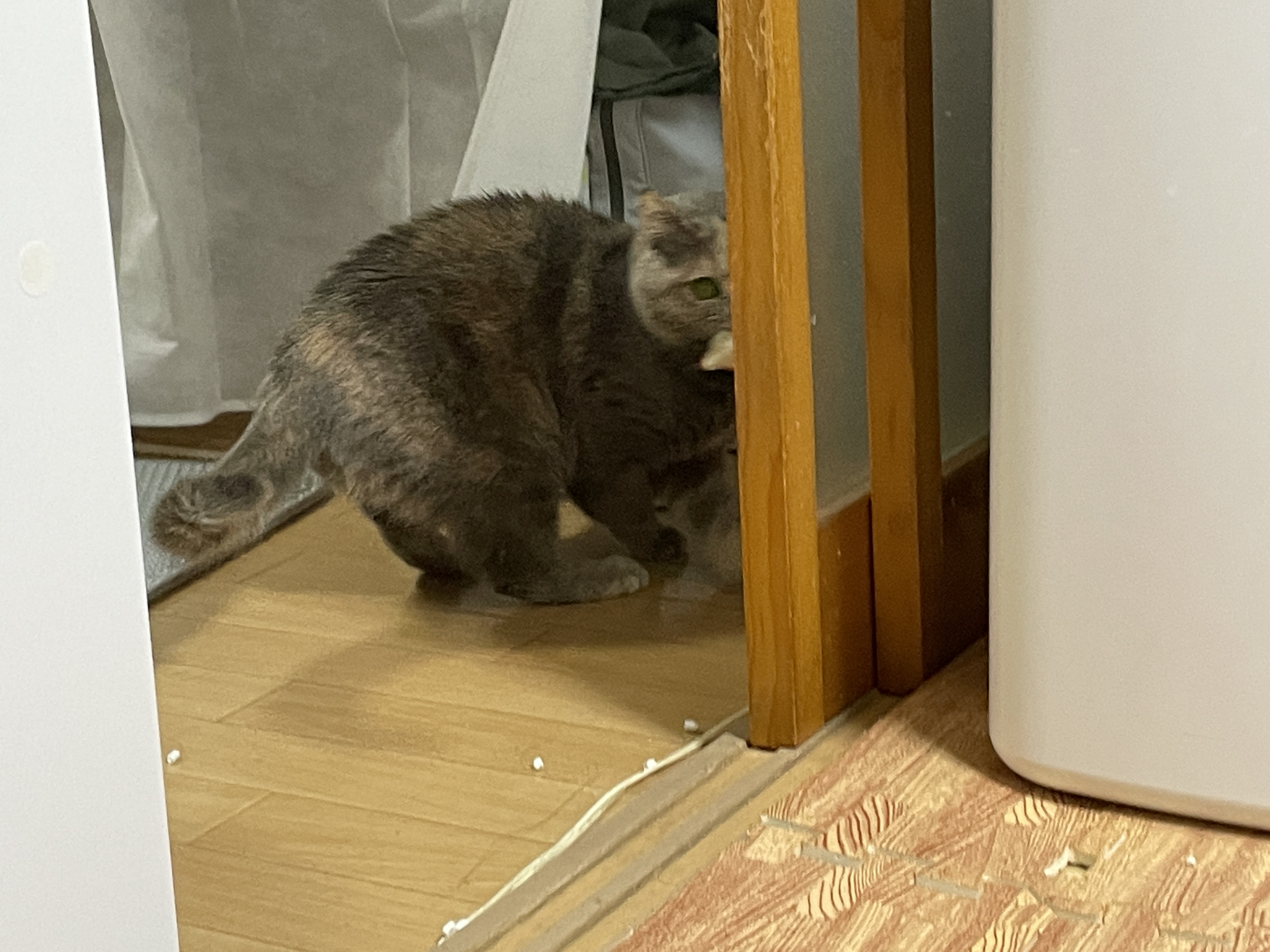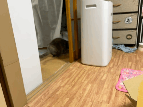 옷 수납장 밑에서 버둥대길래 카메라를 켰는데