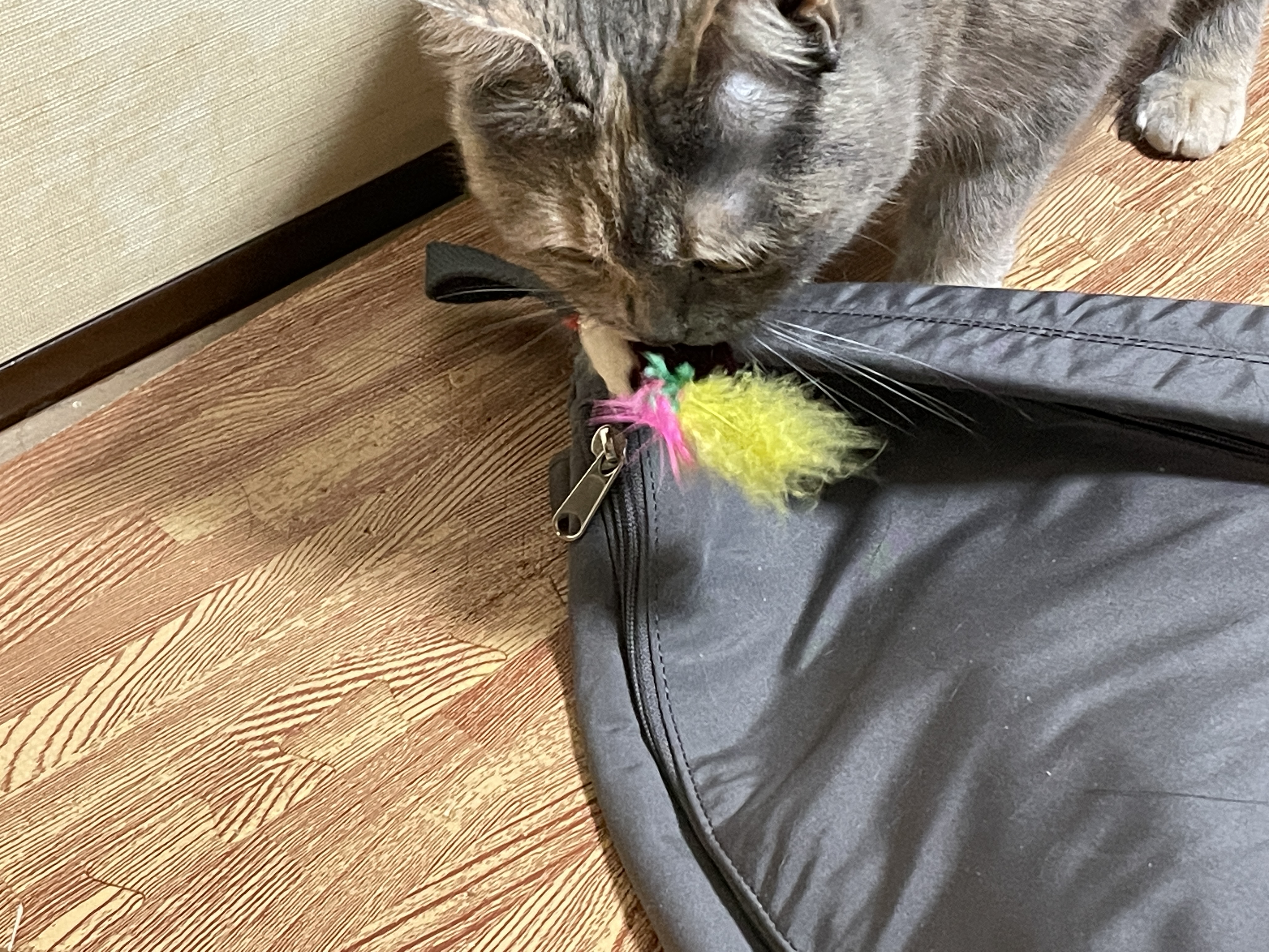 꺼낸 쥐돌이는 바로 집사에게 가져옴