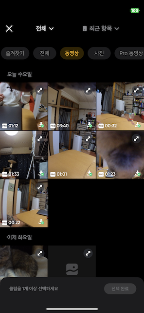그럼 요렇게 카메라에 있는 영상과, 카메라 내에서 다운 받아놓은 영상이 뜹니다.