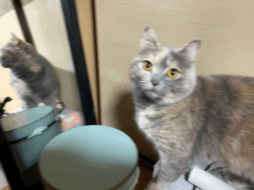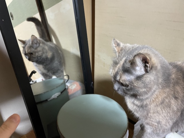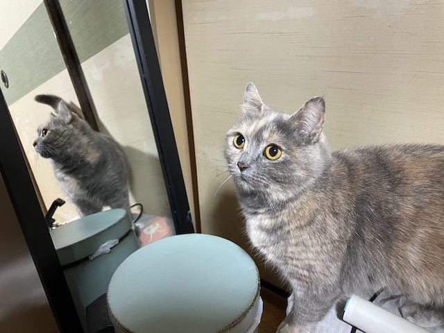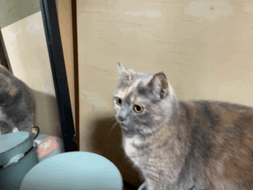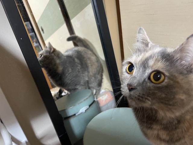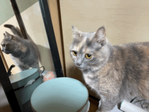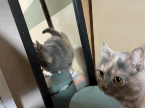 거울에 비친거 귀여워서 찍고 있는데 고개 돌리심