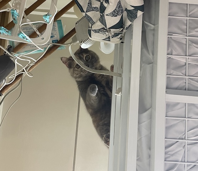 넘어갈라다가 집사한테 걸리고 눈치 스윽 보고 후퇴 ㅋㅋㅋ