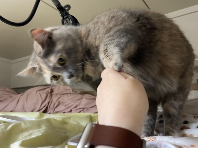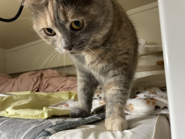 간식이 먹고 싶어서 또 먼저 침대 위에 올라와 계심.