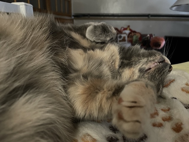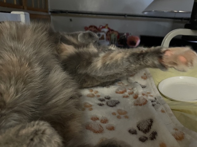 집사가 기지개를 펴니 율무도 신나서 이미 뒹굴 하고 있는 상태